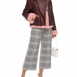 leather, no appliqués, solid color, double-breasted, zipper closure, lapel collar, multipockets, long sleeves, lined in goat hair, large sized, contains non-textile parts of animal origin