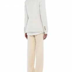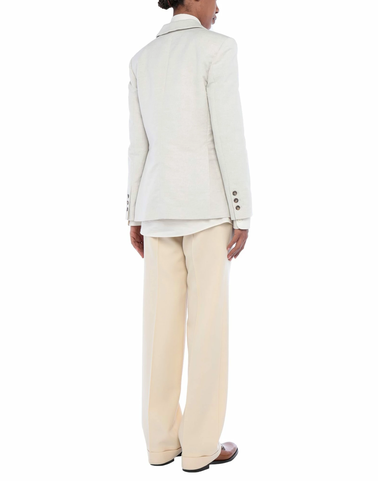 plain weave, no appliqués, solid color, multipockets, pocket with flap, single chest pocket, button closing, lapel collar, double-breasted, long sleeves, semi-lined, dual back vents