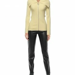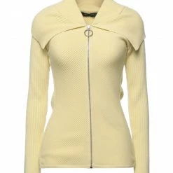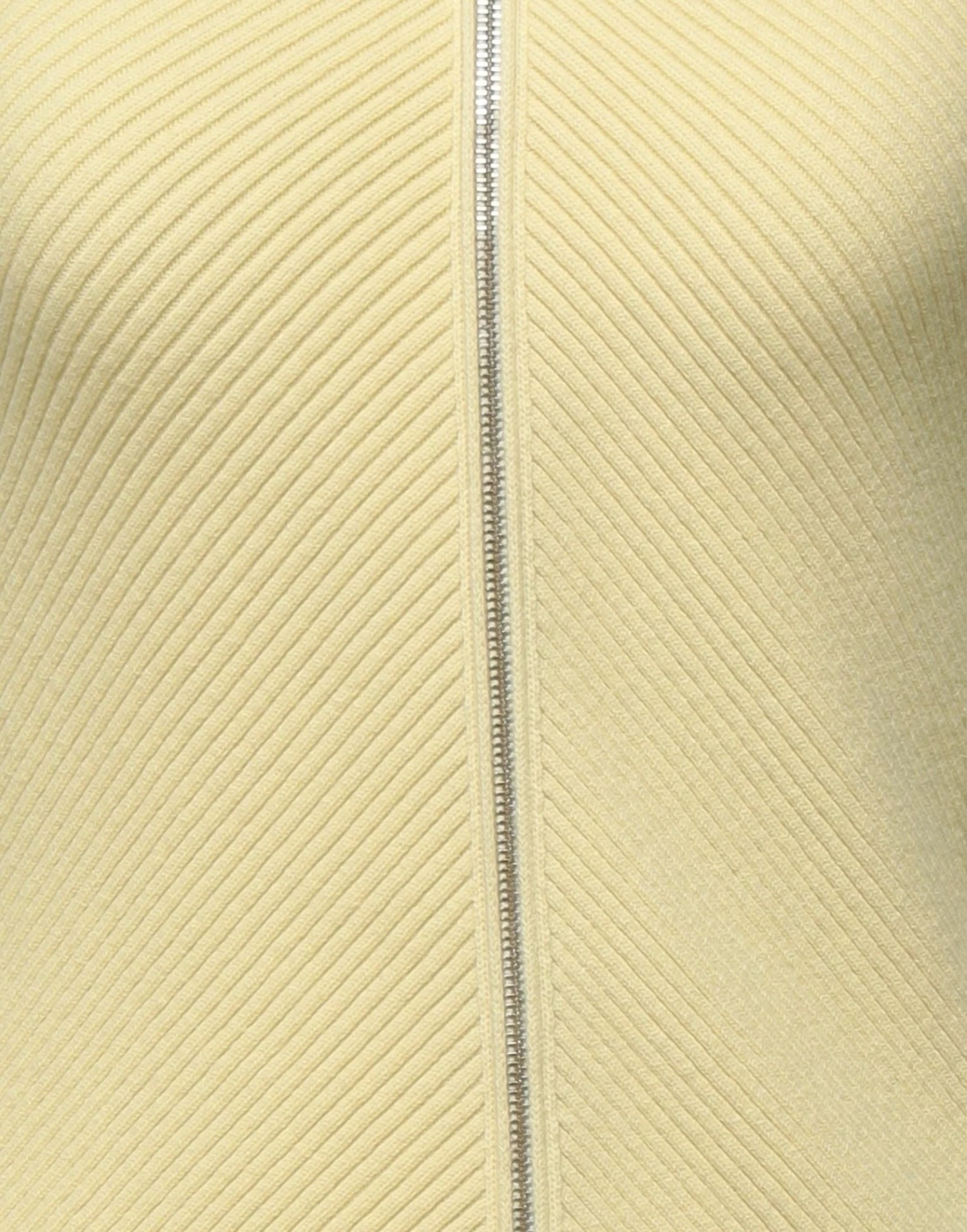 knitted, no appliqués, solid color, round collar, long sleeves, zipper closure, no pockets, ribbed, lightweight knit
