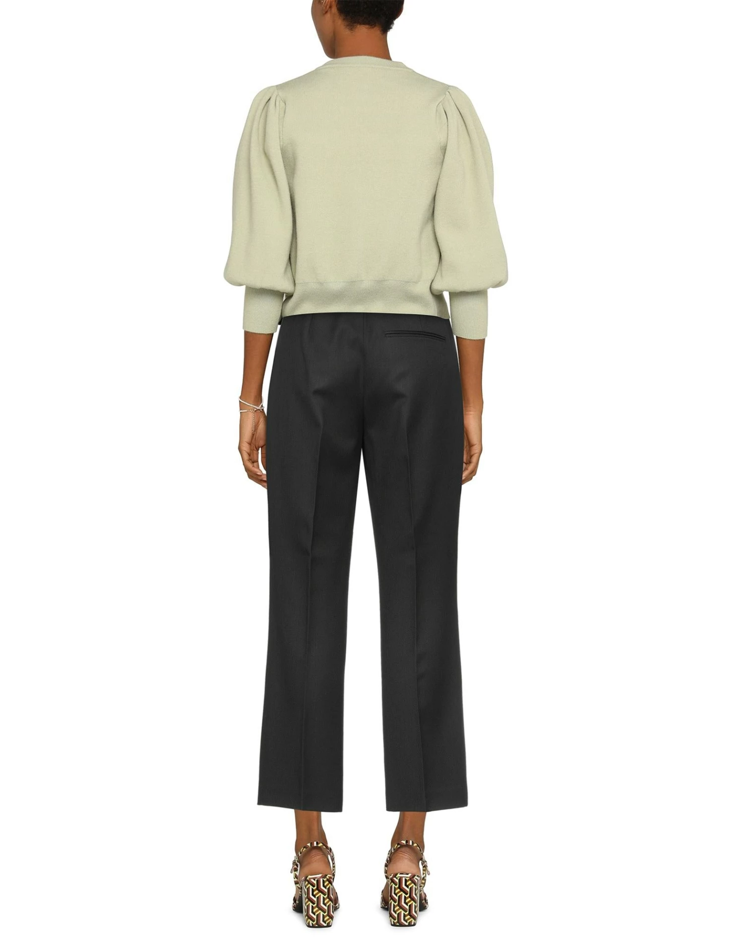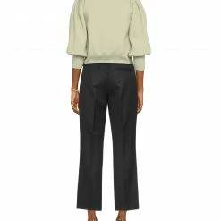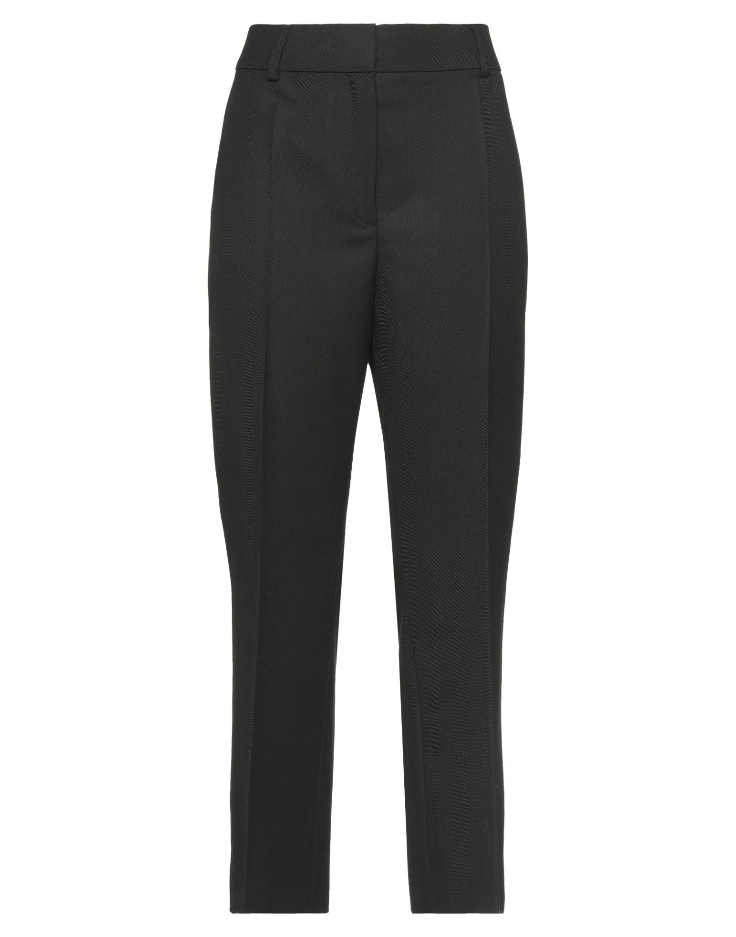 cool wool, no appliqués, solid color, high waisted, straight leg, regular fit, hook-and-eye closure, zipper closure, no pockets