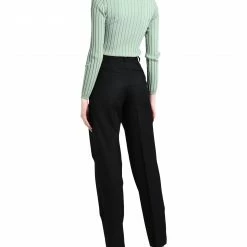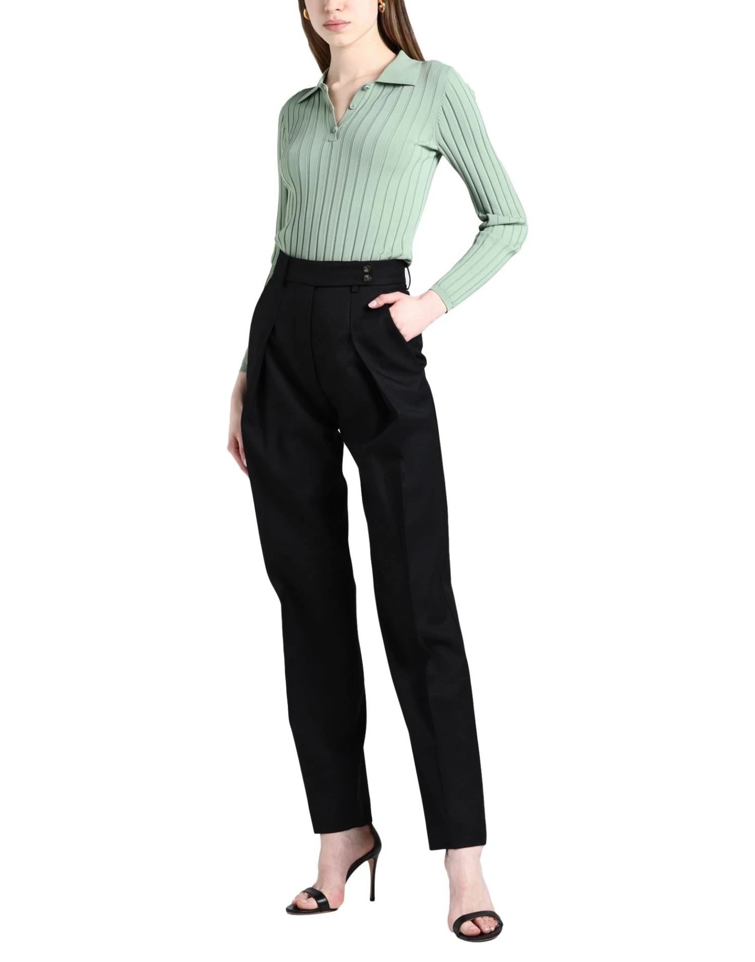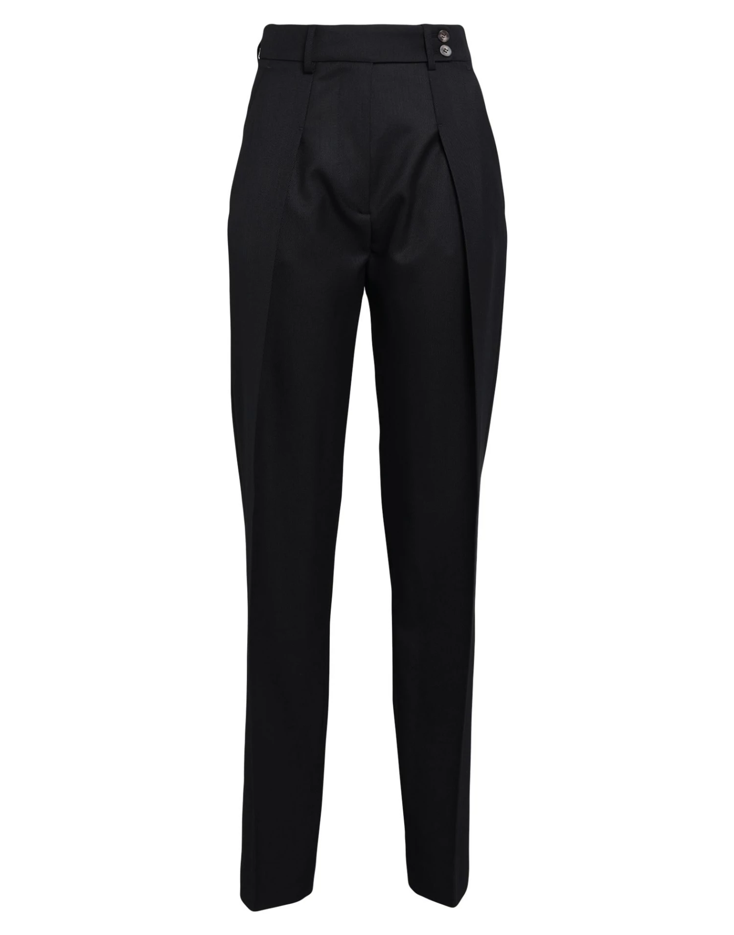 twill, darts, solid color, high waisted, tapered leg, regular fit, zipper closure, button closing, multipockets, contains non-textile parts of animal origin