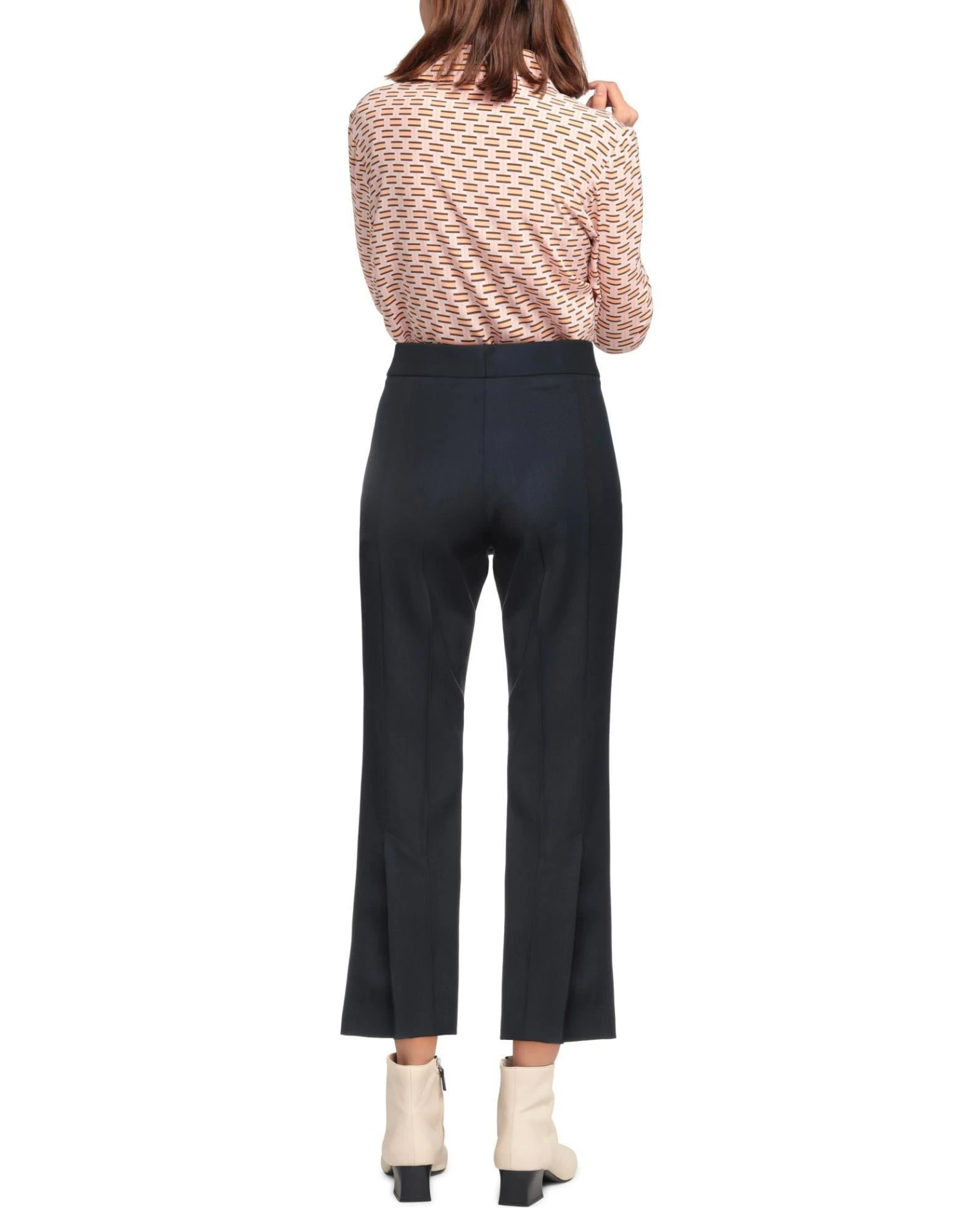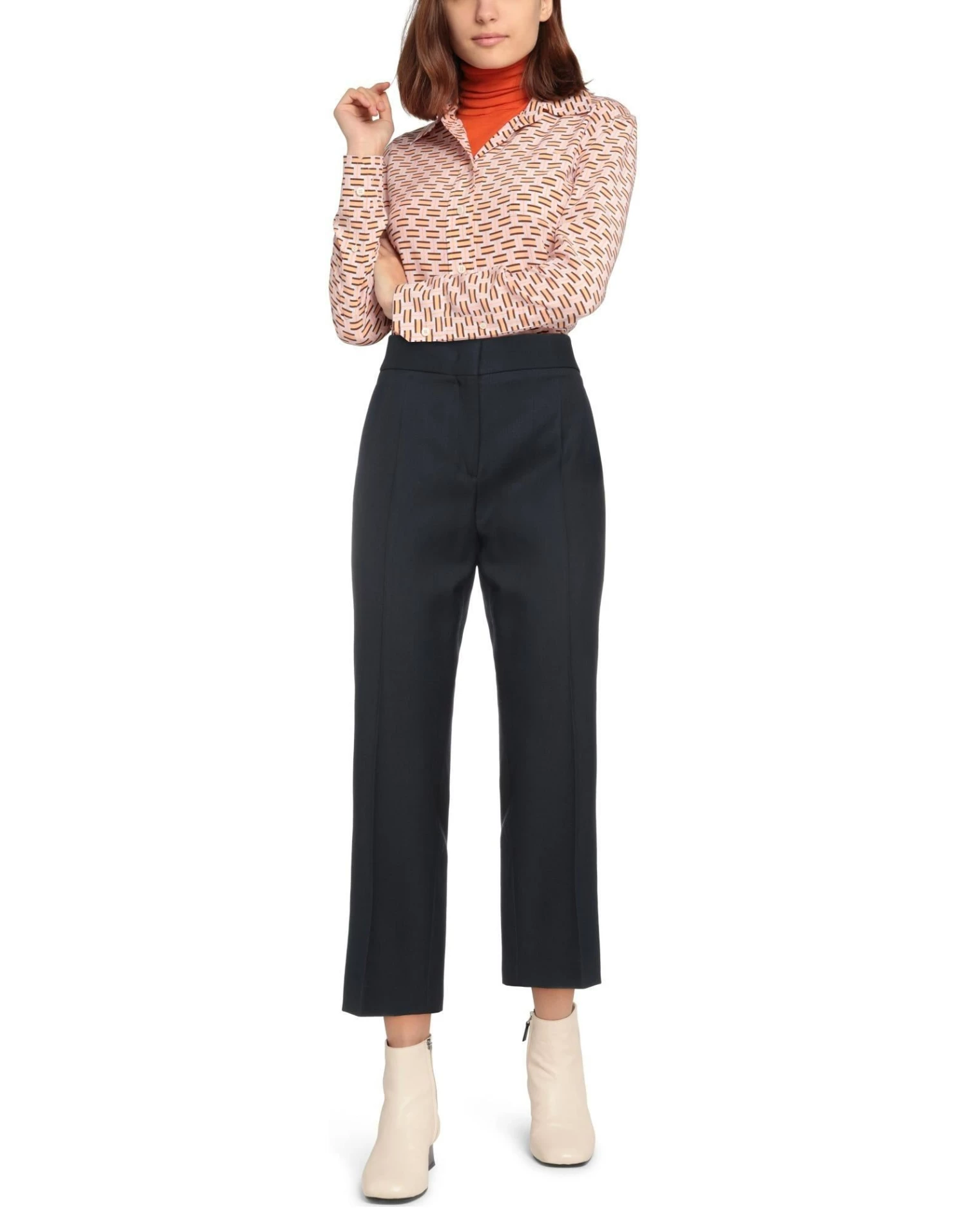 twill, high waisted, solid color, regular fit, multipockets, no appliqués, flared cut, hook-and-eye closure, zipper closure
