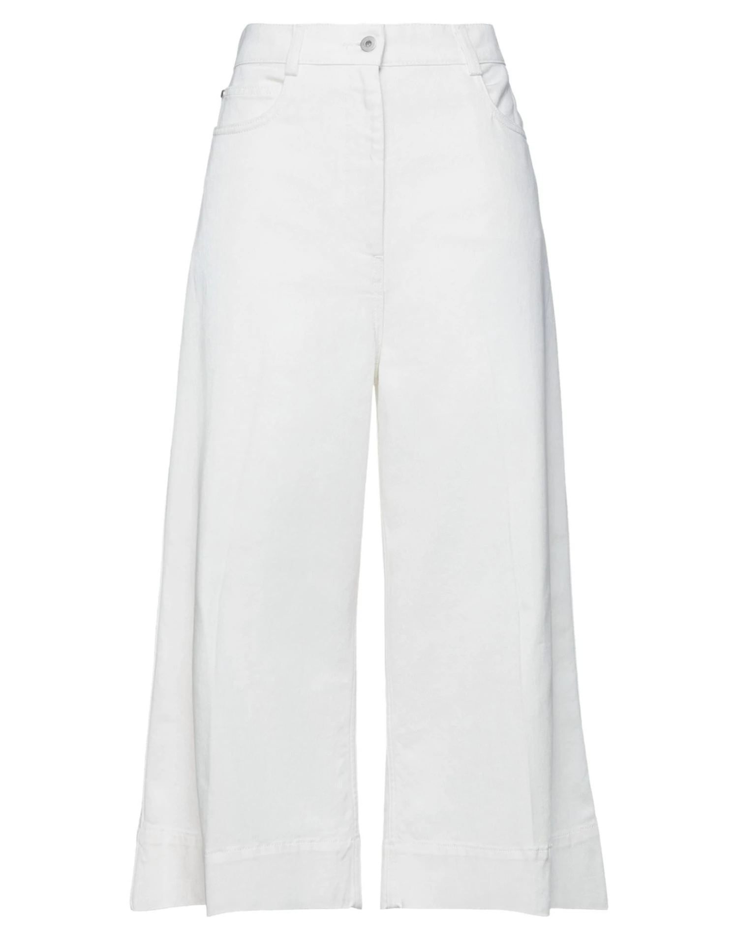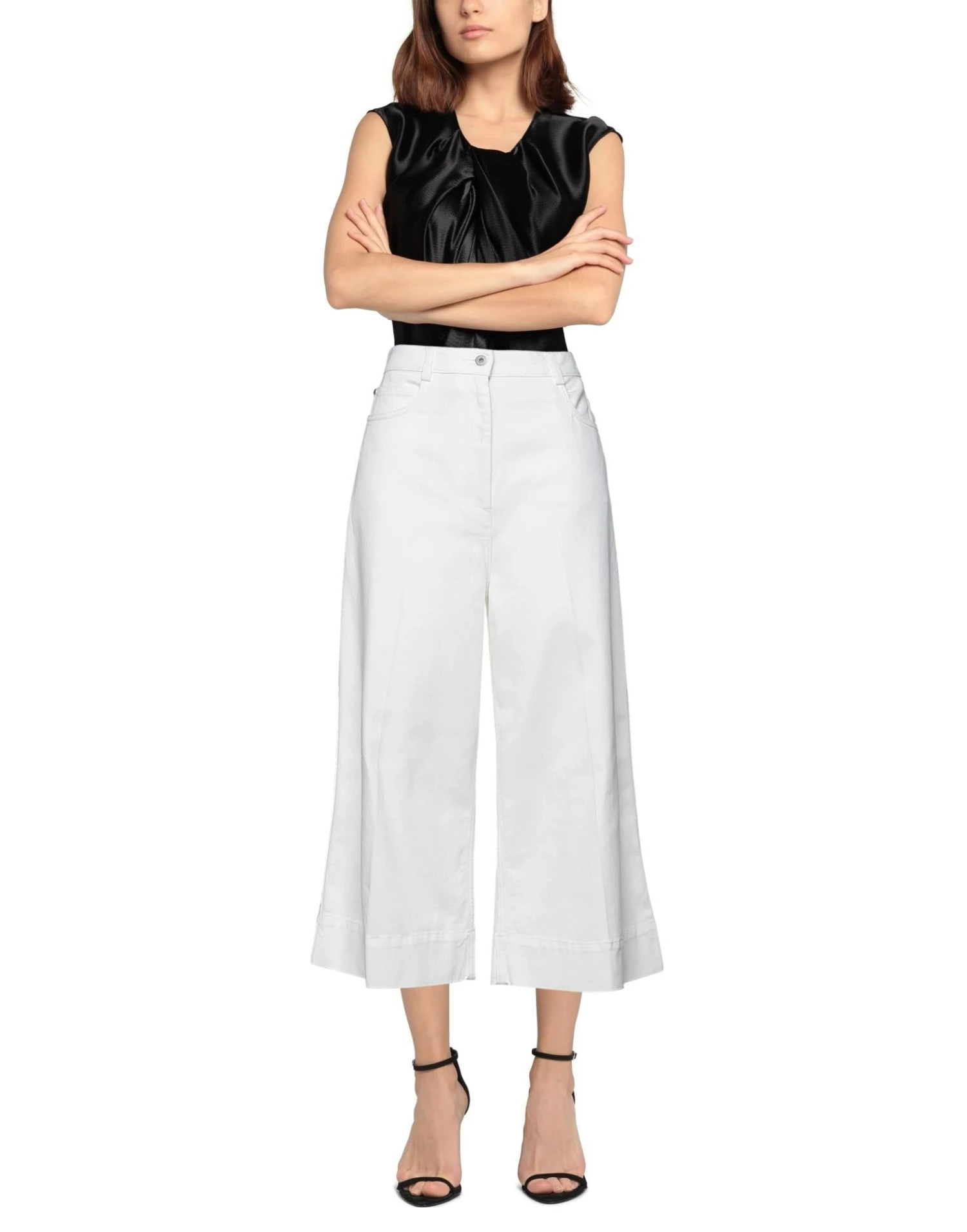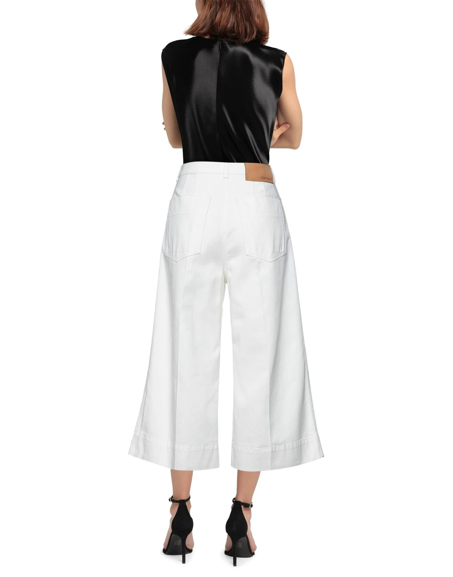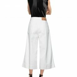 gabardine, solid color, logo, leather applications, high waisted, regular fit, wide leg, button, zip, multipockets, contains non-textile parts of animal origin