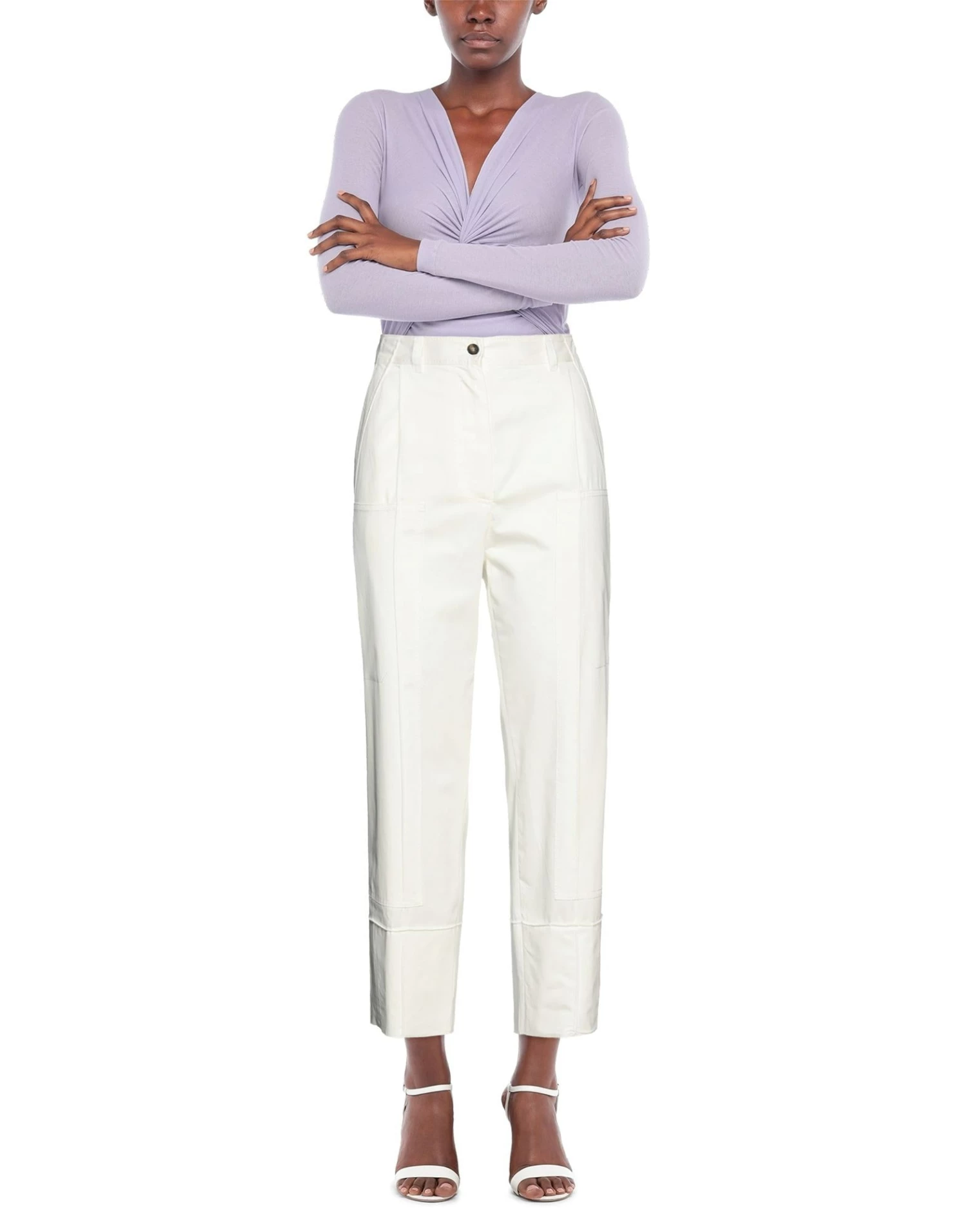 plain weave, no appliqués, solid color, high waisted, belt loops, tapered leg, regular fit, zipper closure, multipockets