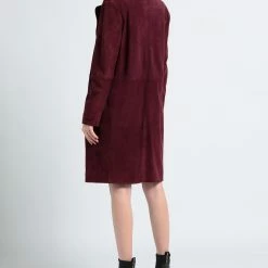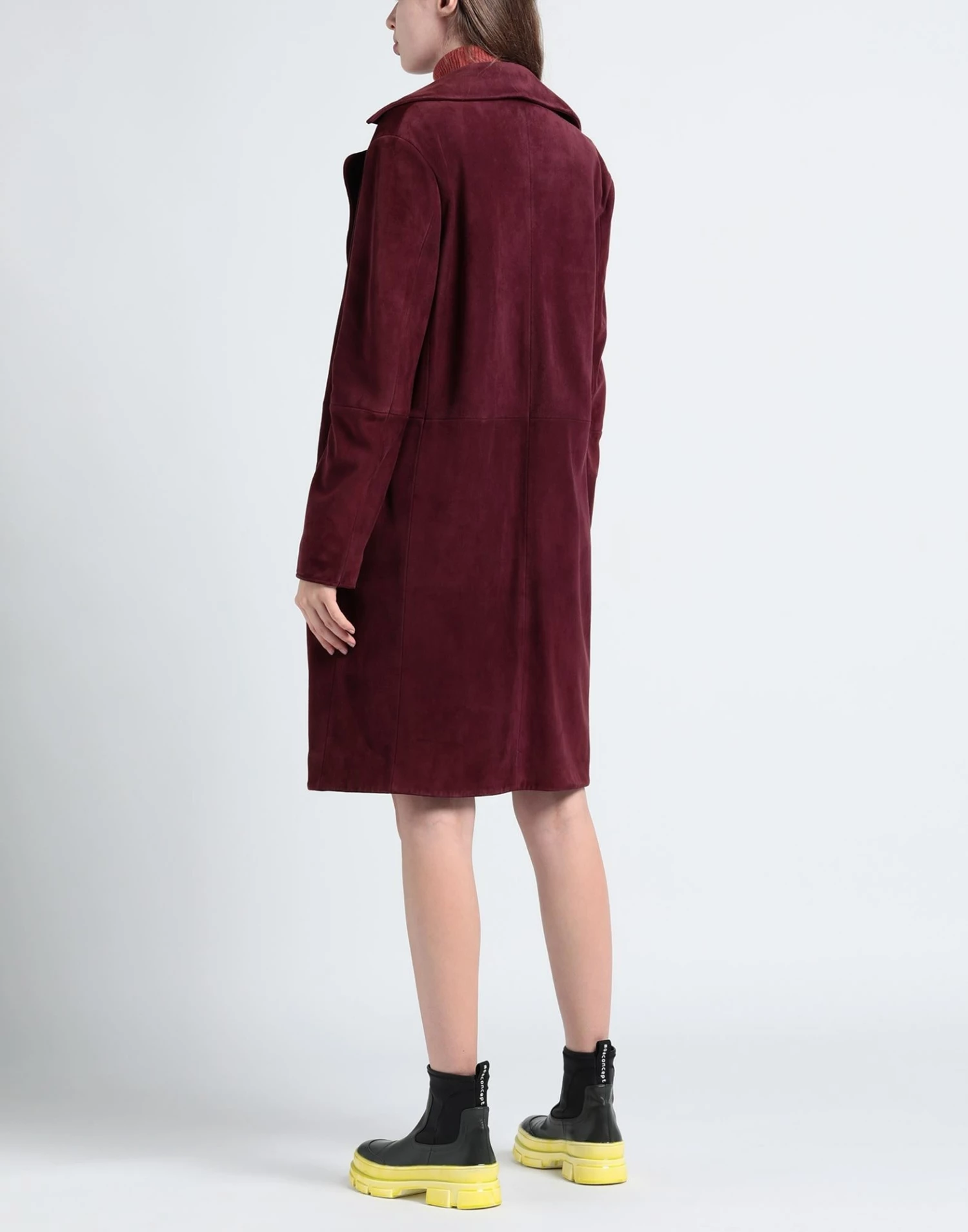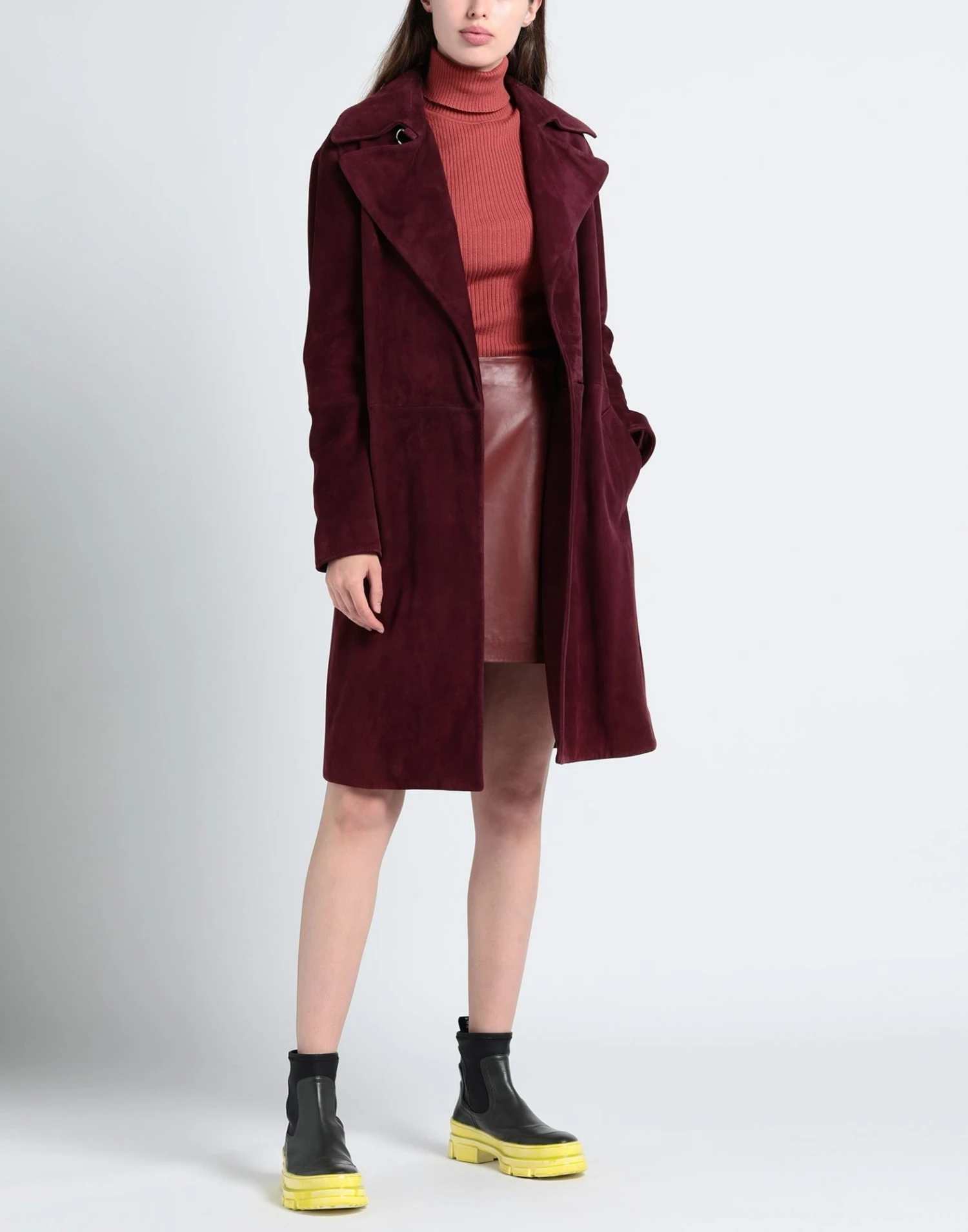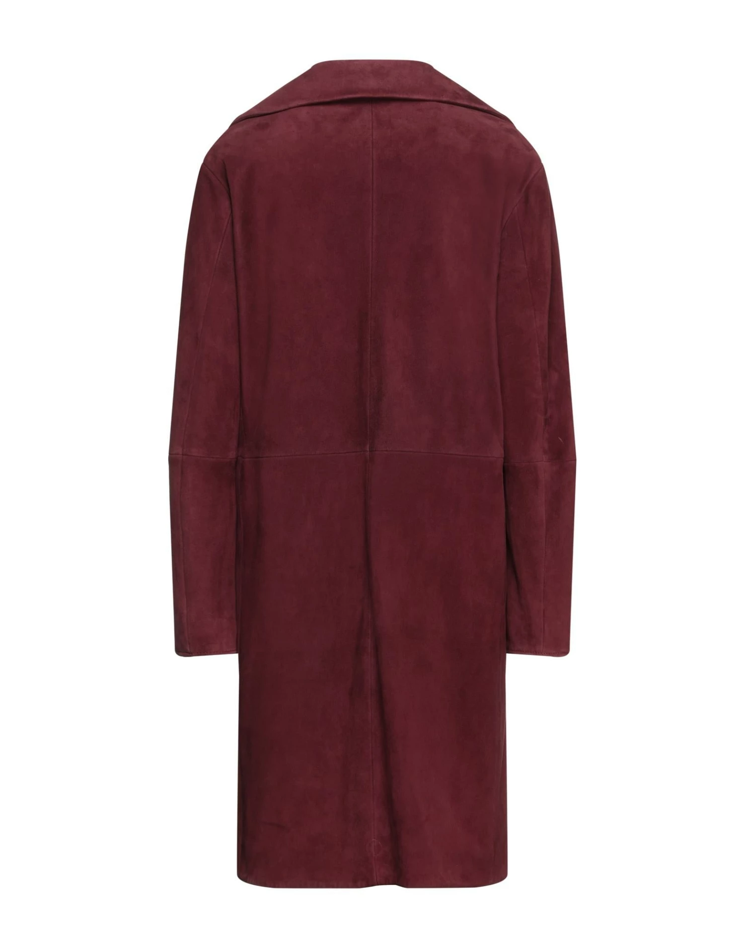 leather, suede effect, no appliqués, solid color, lapel collar, double-breasted, long sleeves, fully lined, 2 buttons, multipockets, contains non-textile parts of animal origin, large sized