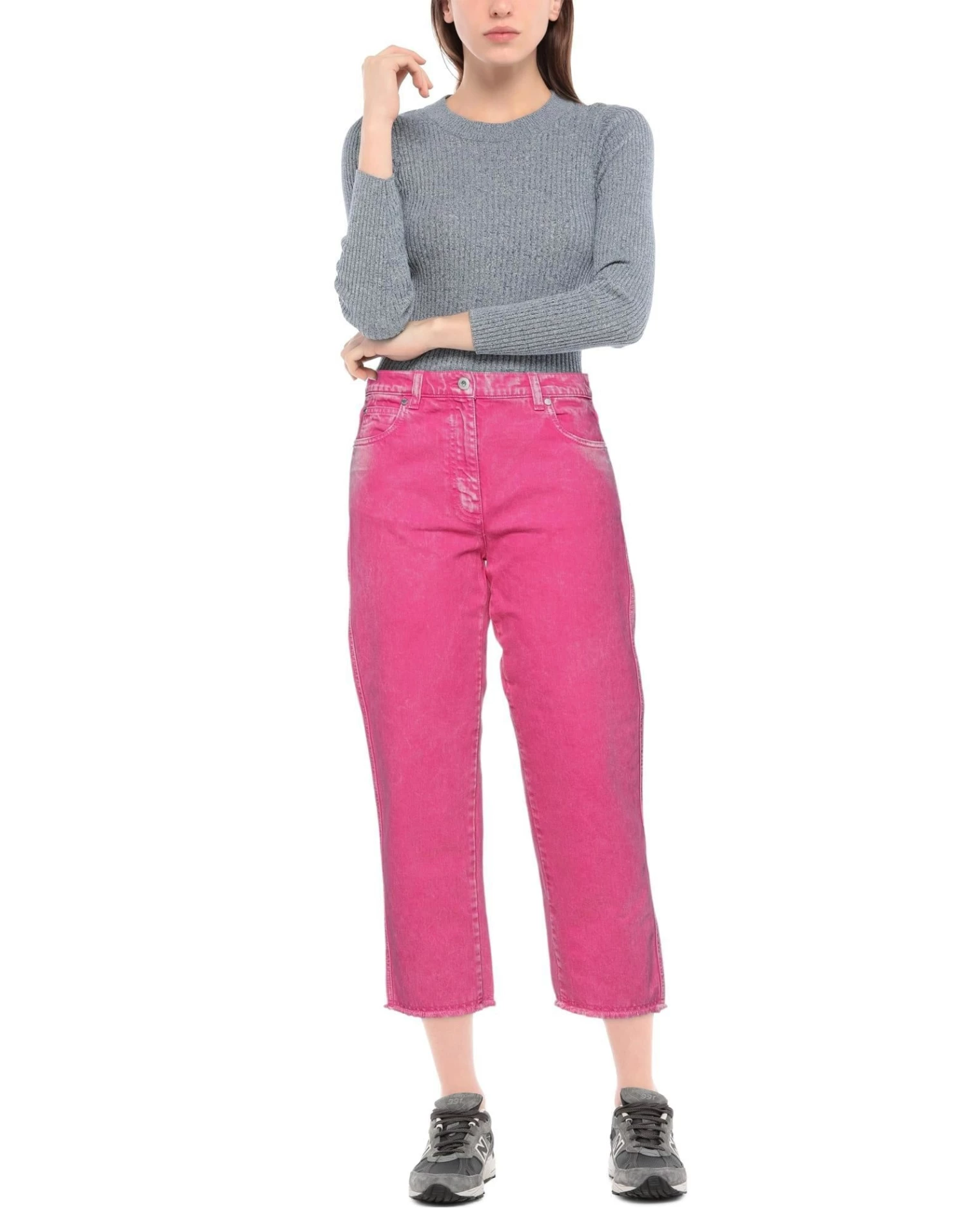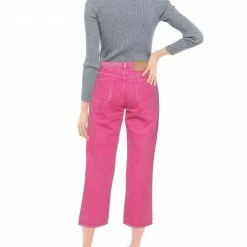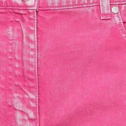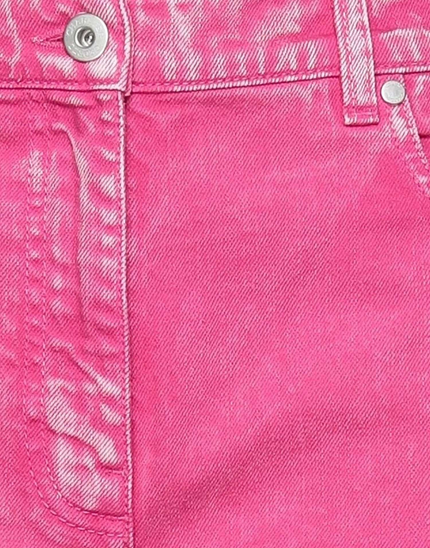 denim, leather applications, brand logo, solid color, faded, colored wash, high waisted, belt loops, straight leg, regular fit, zipper closure, button closing, five pockets, raw-cut hem, contains non-textile parts of animal origin