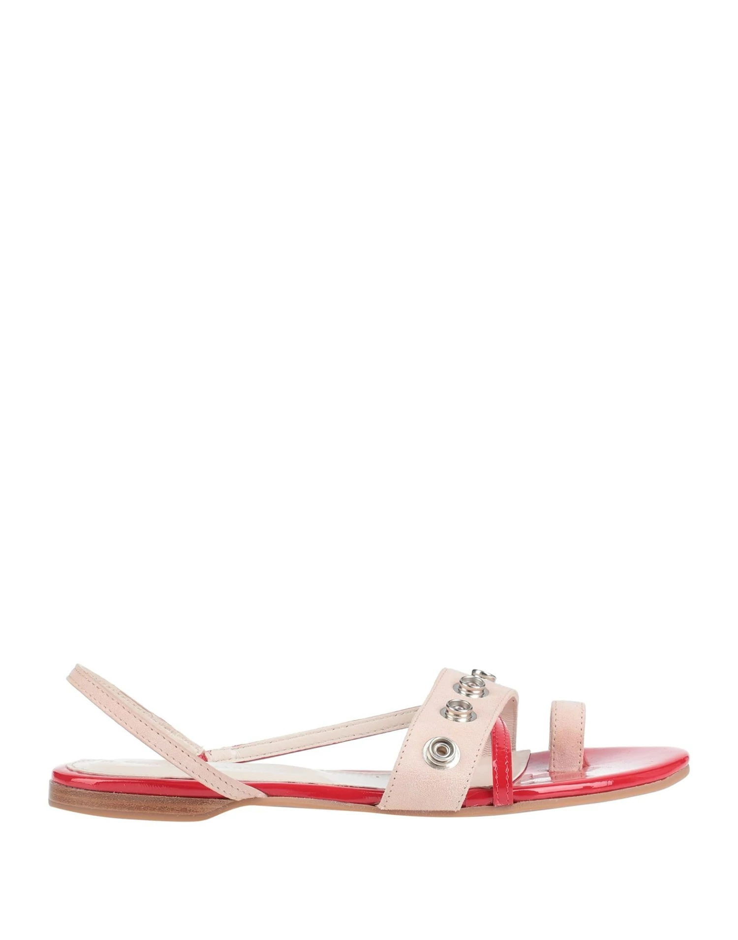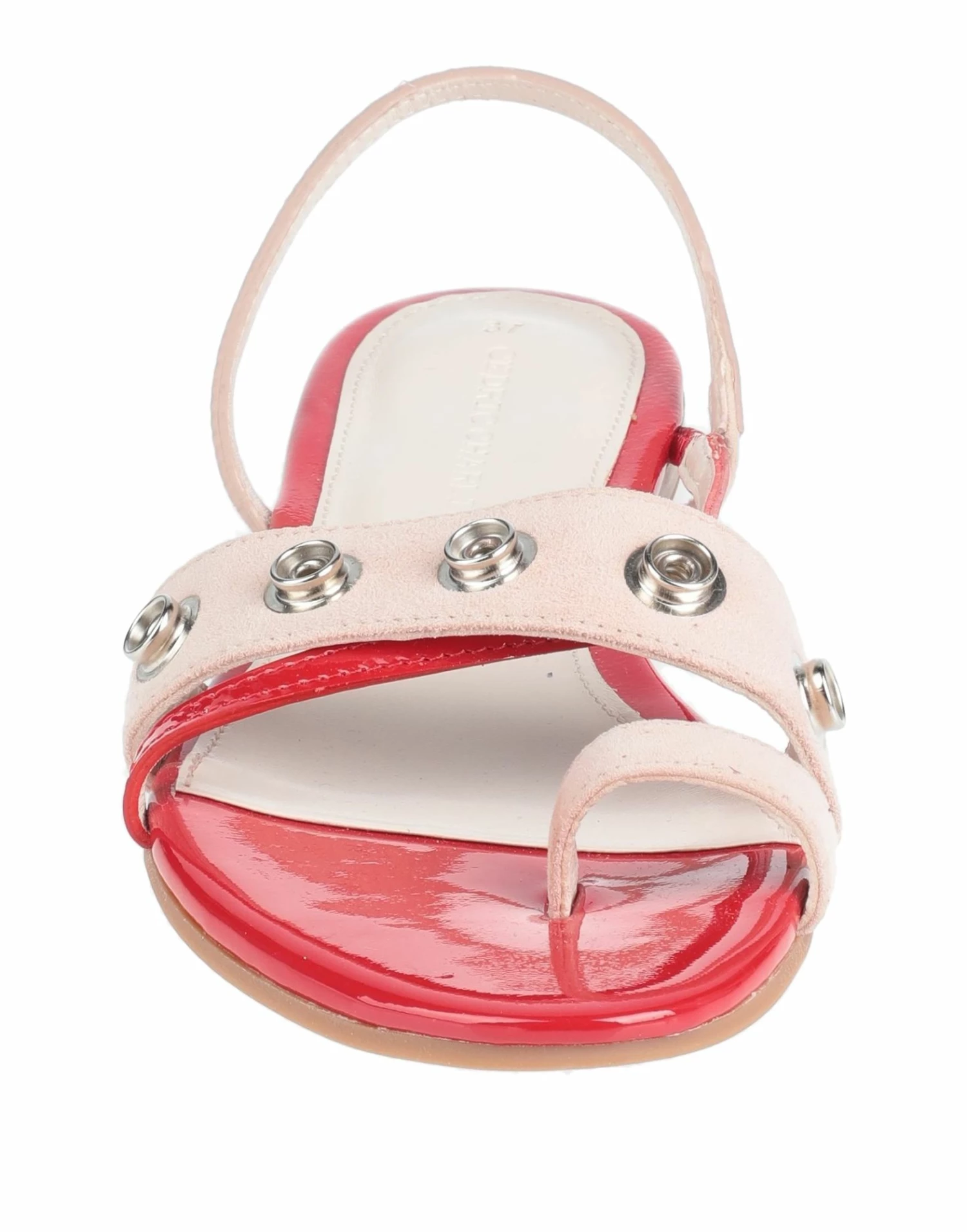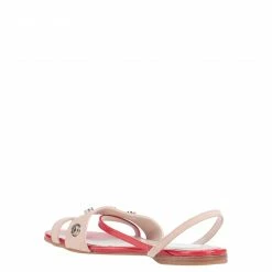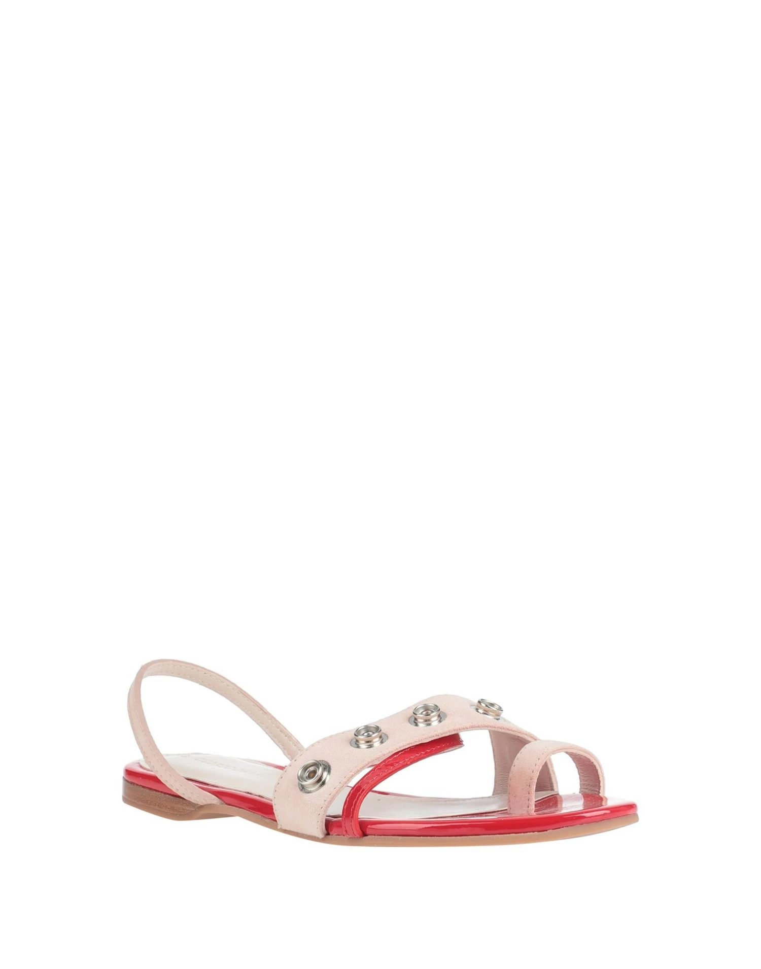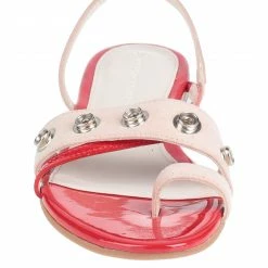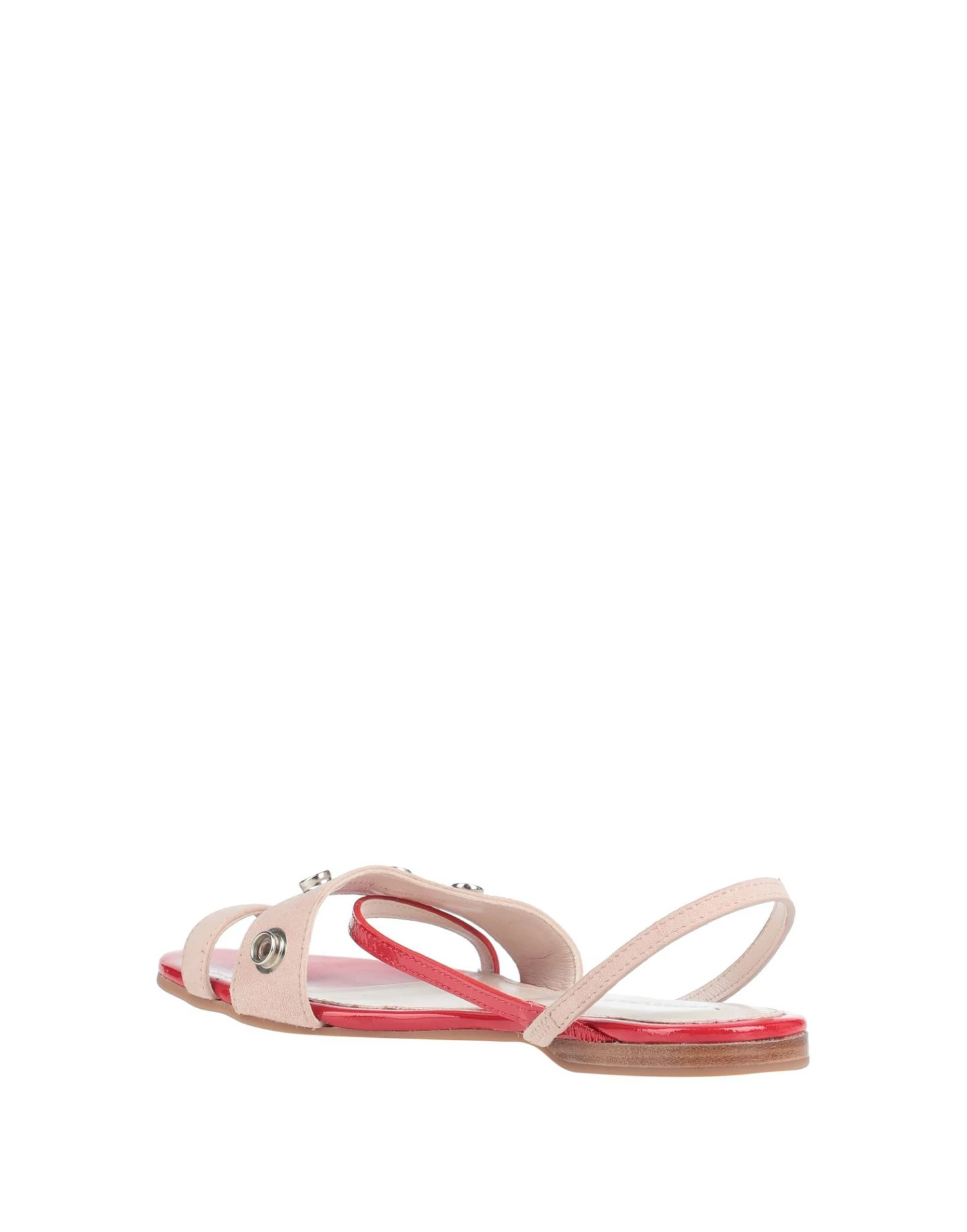 suede effect, metal applications, two-tone, elasticized straps, round toeline, flat, leather lining, rubber sole, contains non-textile parts of animal origin