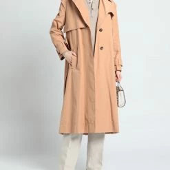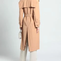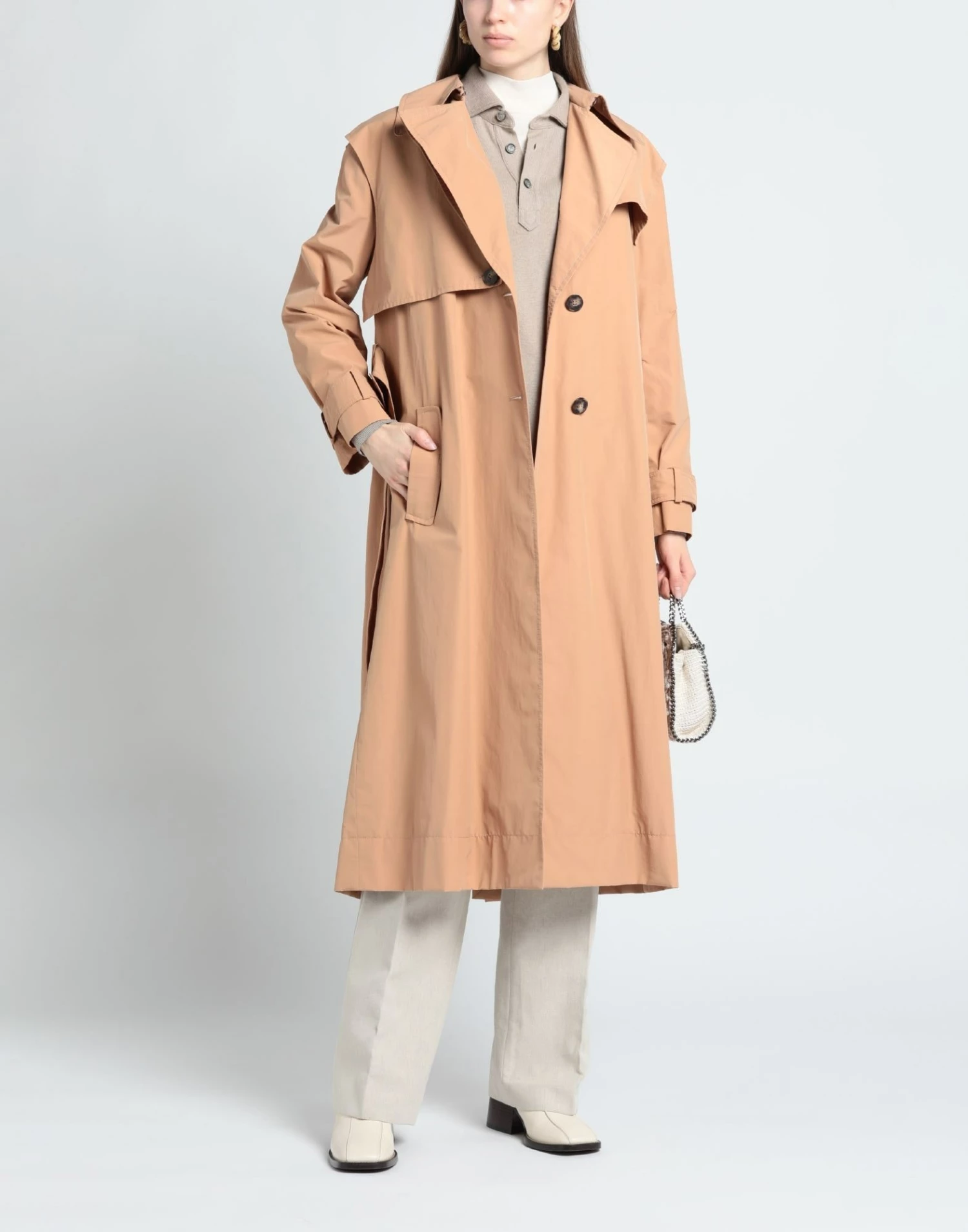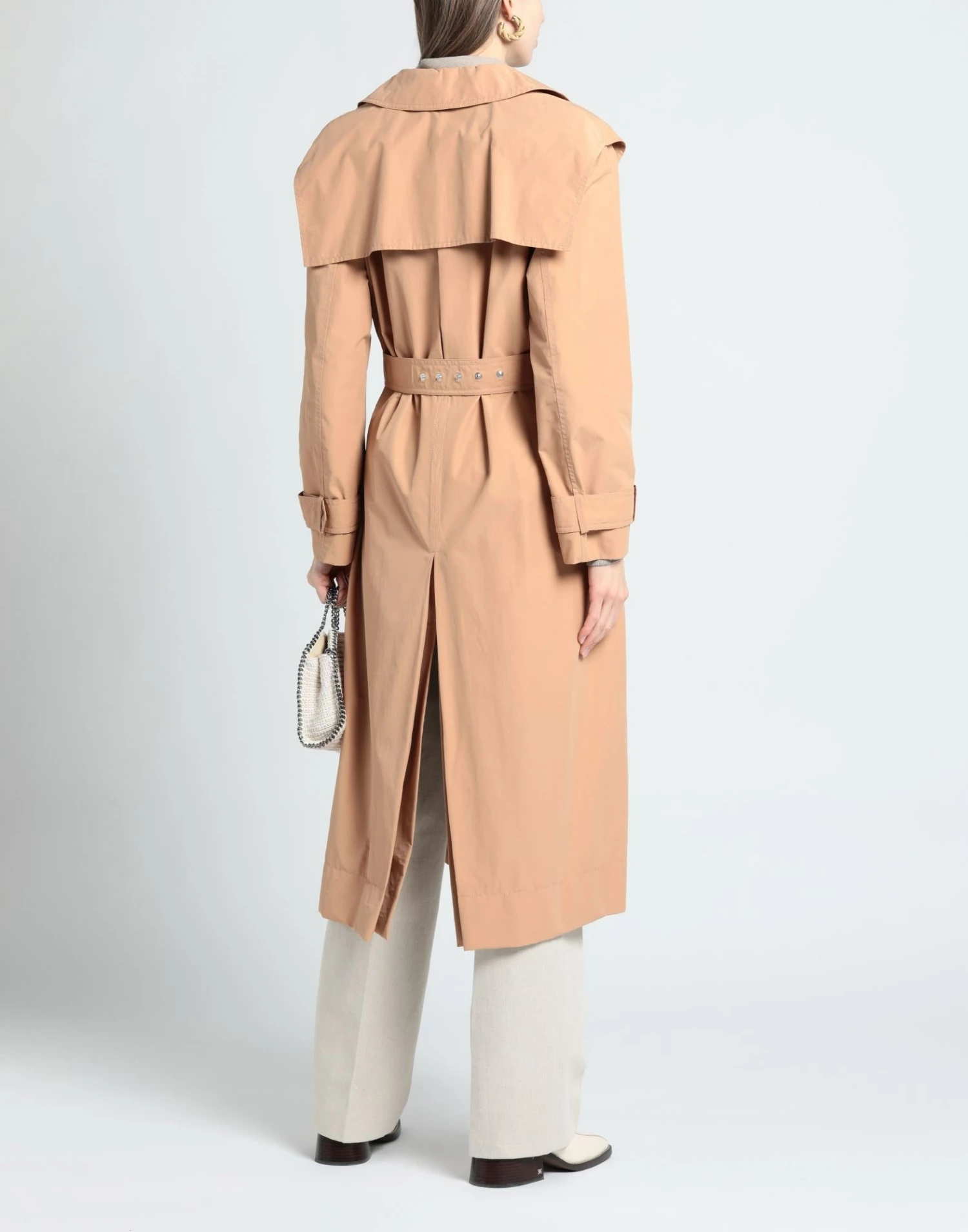 techno fabric, belt, solid color, classic neckline, long sleeves, fully lined, button closing, multipockets, rear slit, contains non-textile parts of animal origin, large sized
