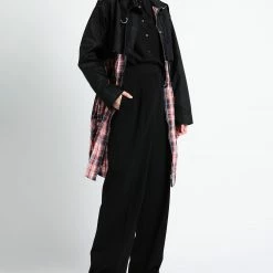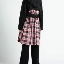 techno fabric, no appliqués, tartan pattern, hooded collar, single-breasted , long sleeves, unlined, snap buttons fastening, zipper closure, multipockets, large sized