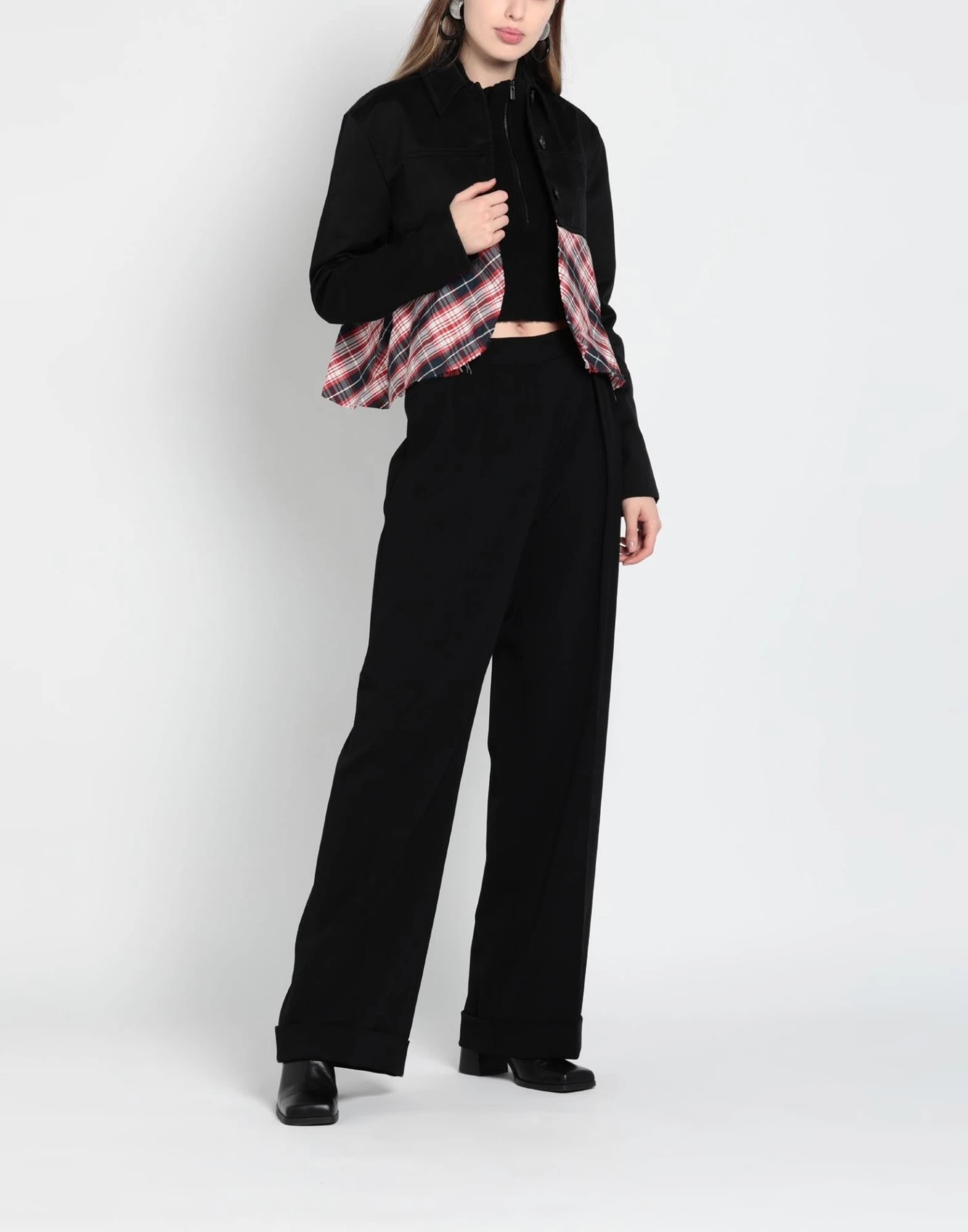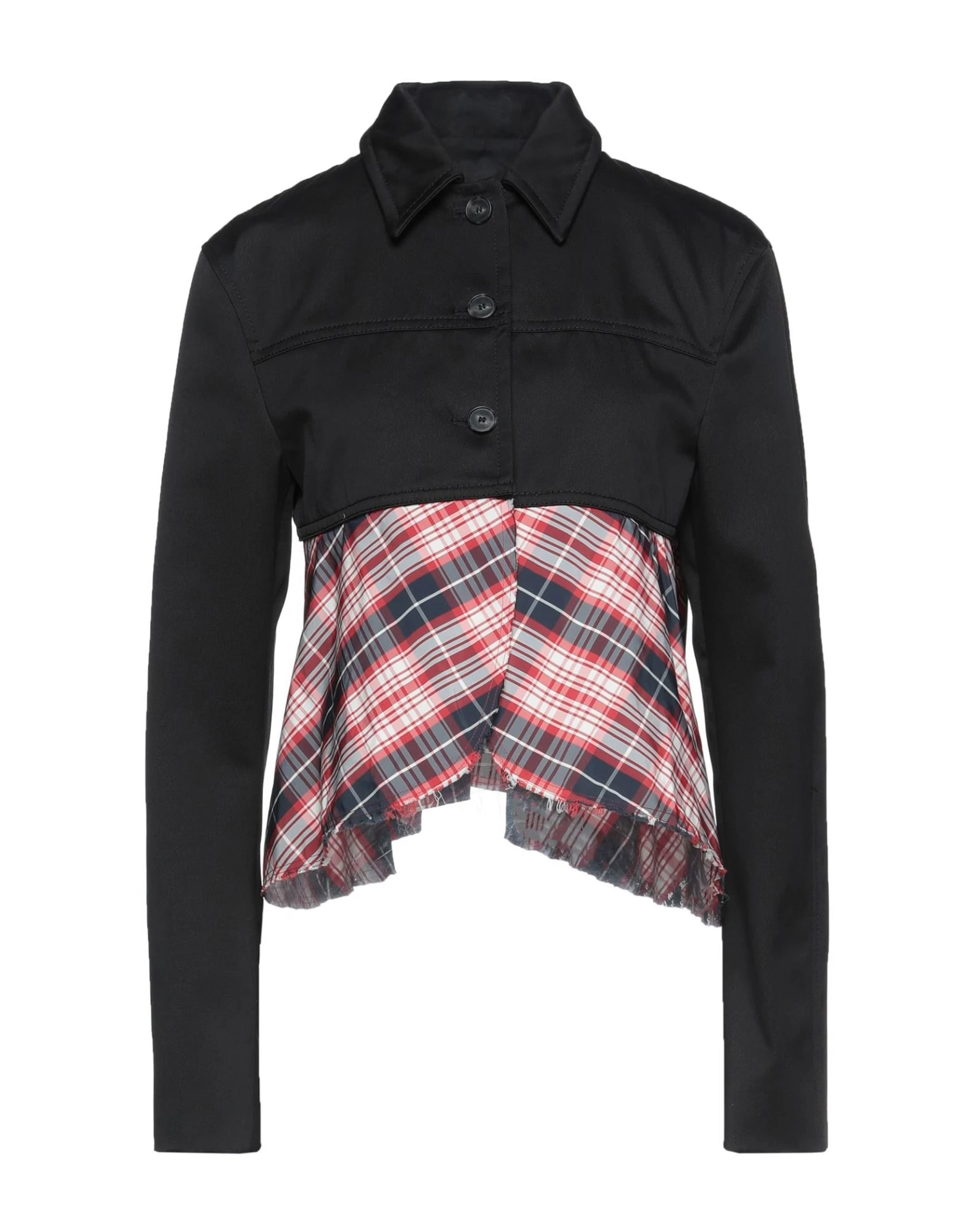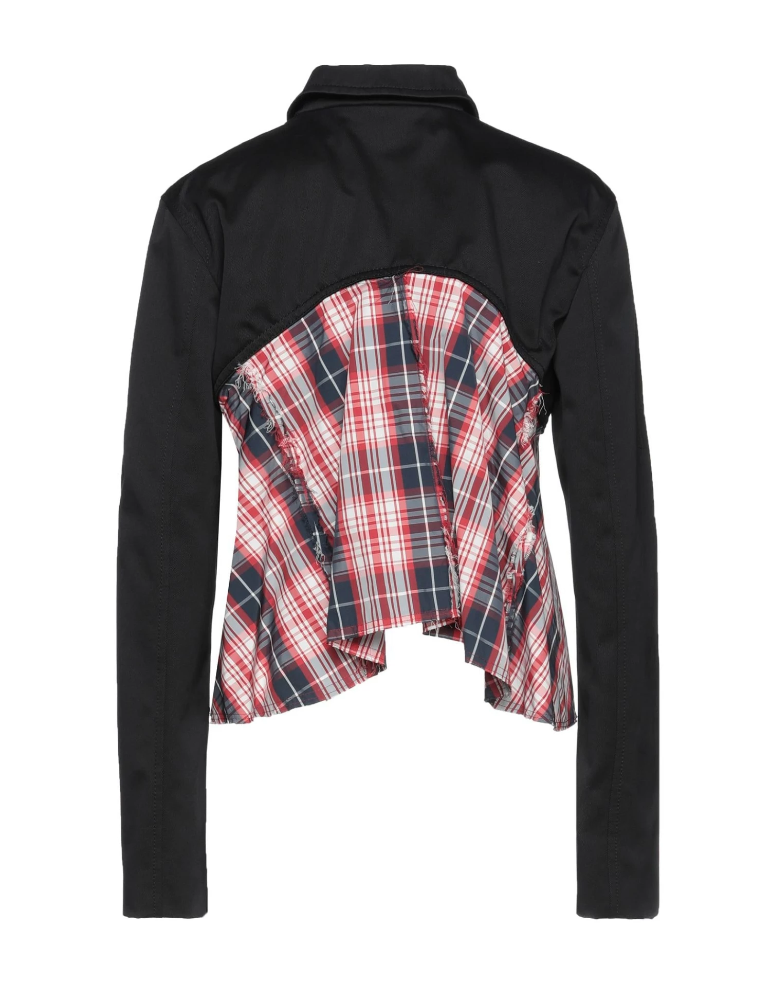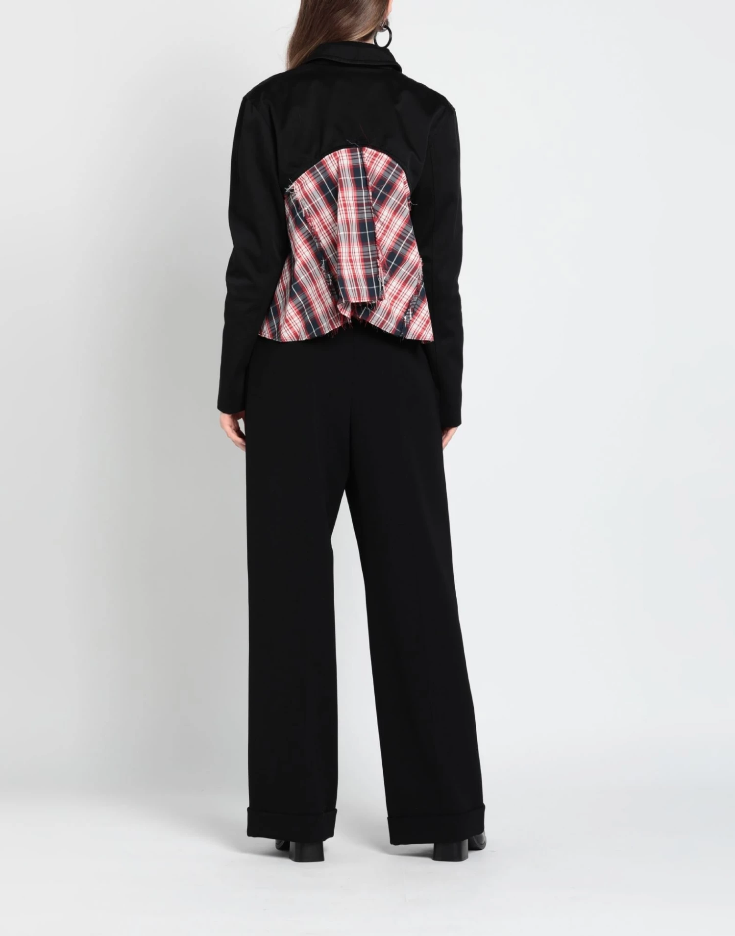techno fabric, twill, no appliqués, tartan pattern, classic neckline, single-breasted , long sleeves, unlined, button closing, no pockets, large sized