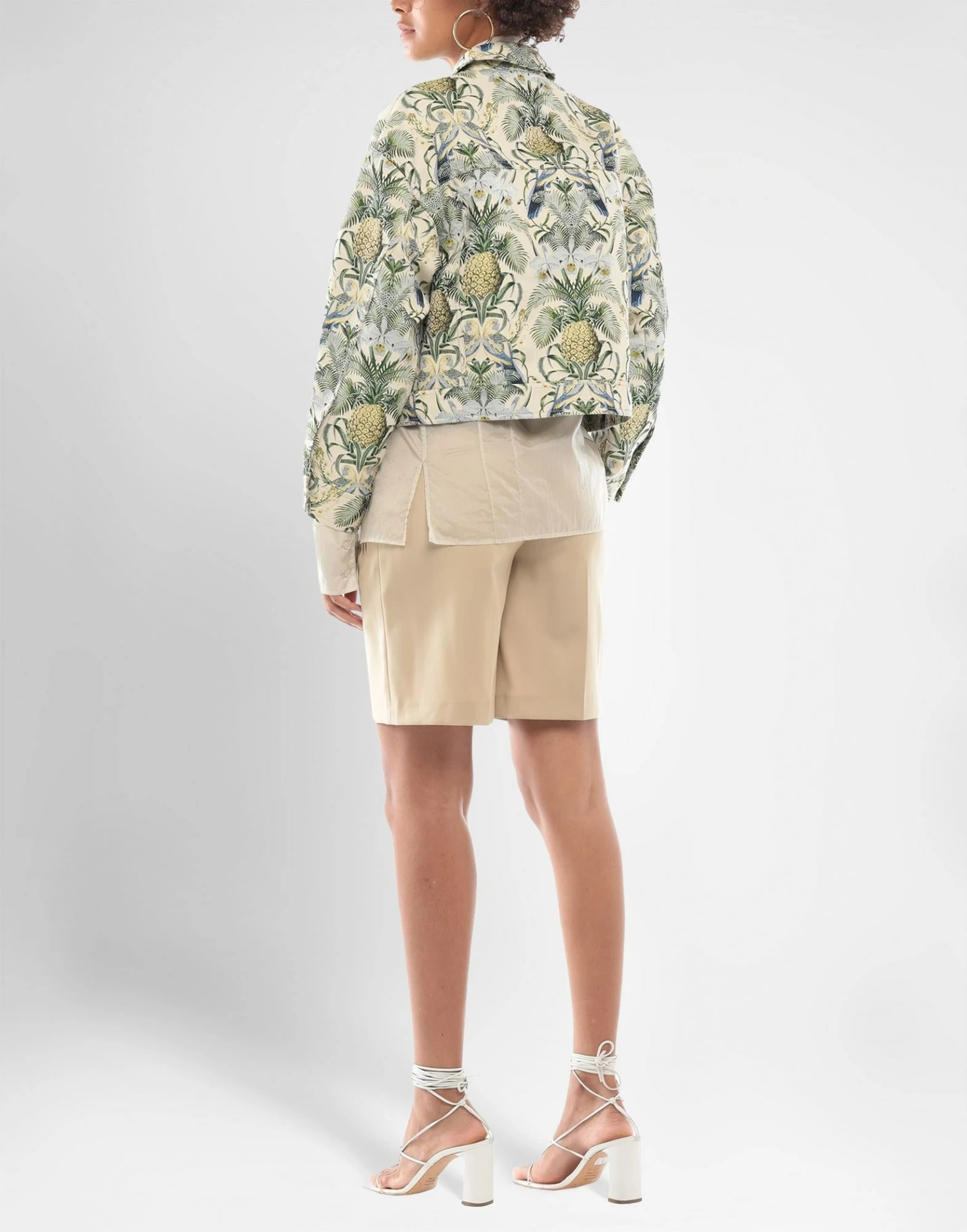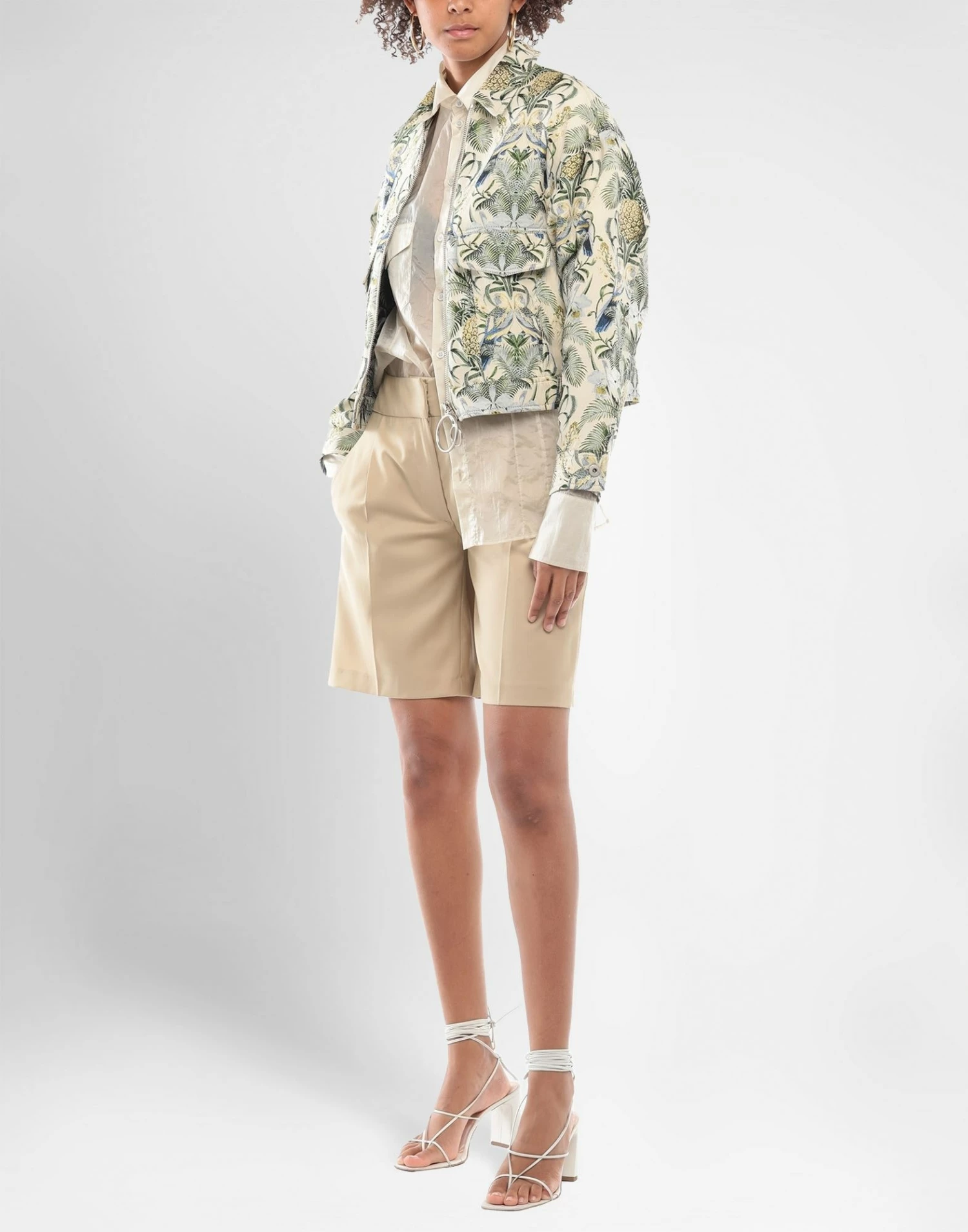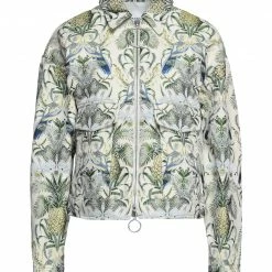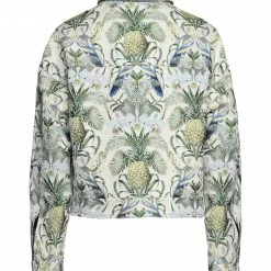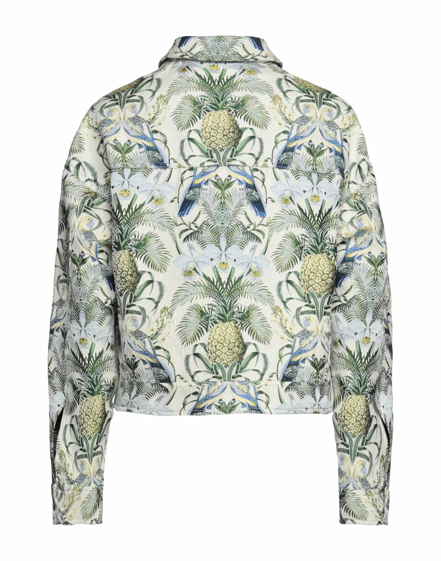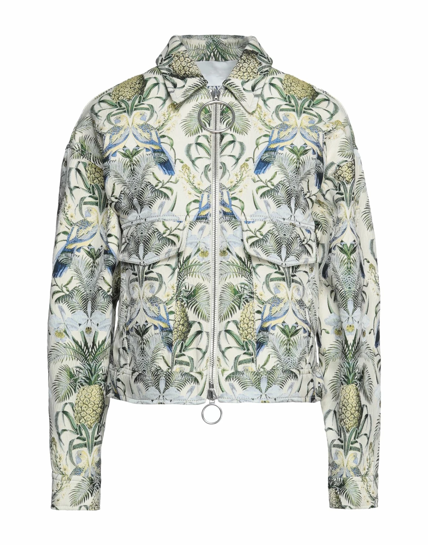 jacquard, plain weave, no appliqués, floral design, single-breasted , classic neckline, long sleeves, buttoned cuffs, zipper closure, two breast pockets, pocket with flap, unlined, large sized