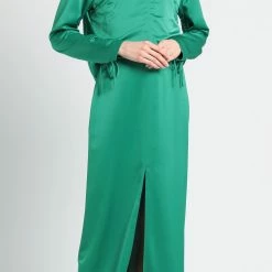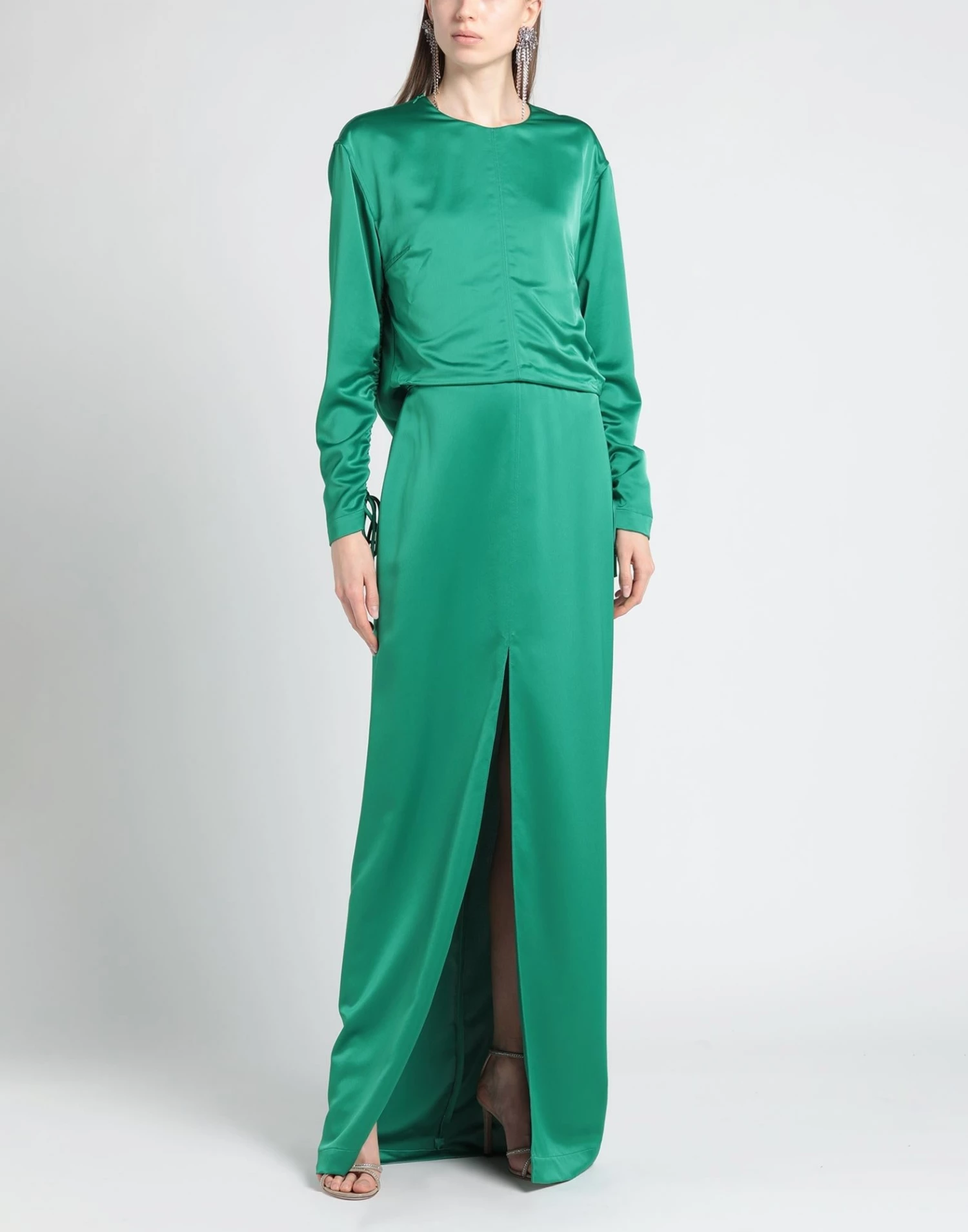 satin, no appliqués, solid color, round collar, long sleeves, unlined, zipper closure, no pockets, small sized