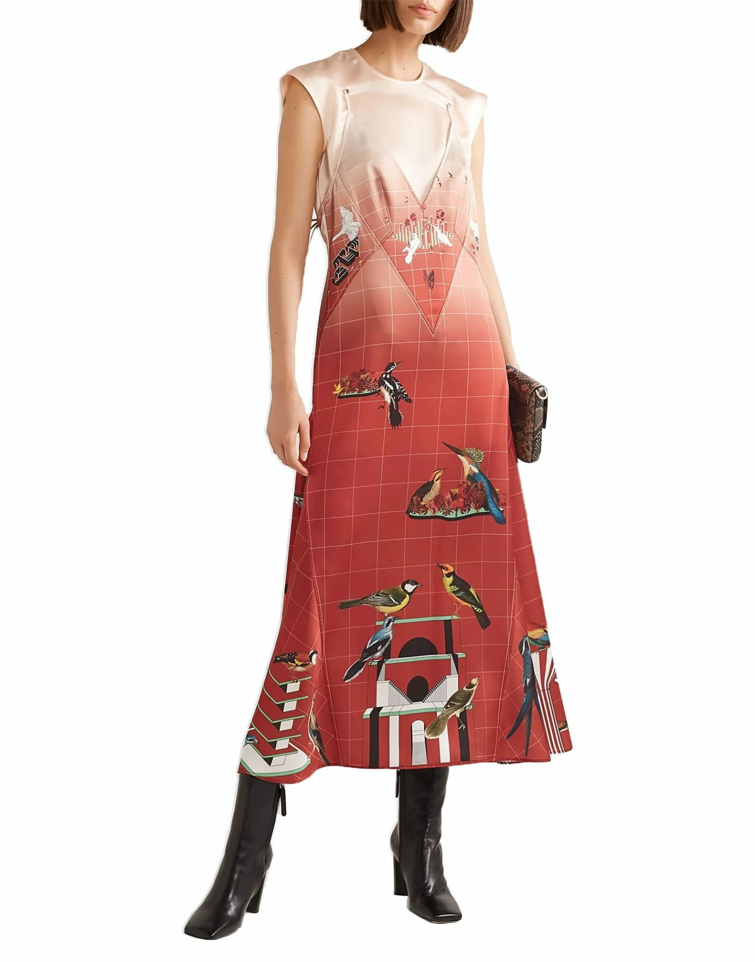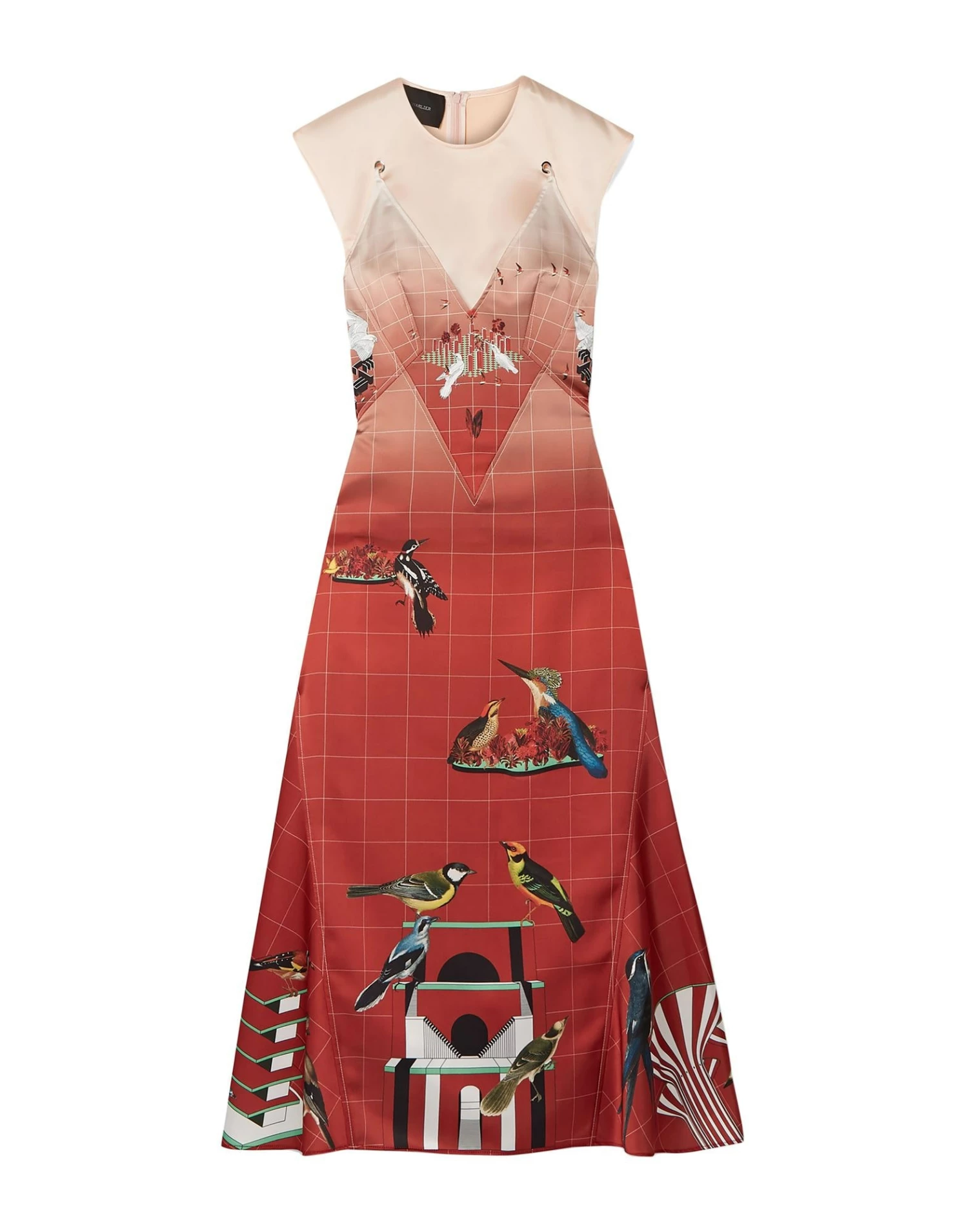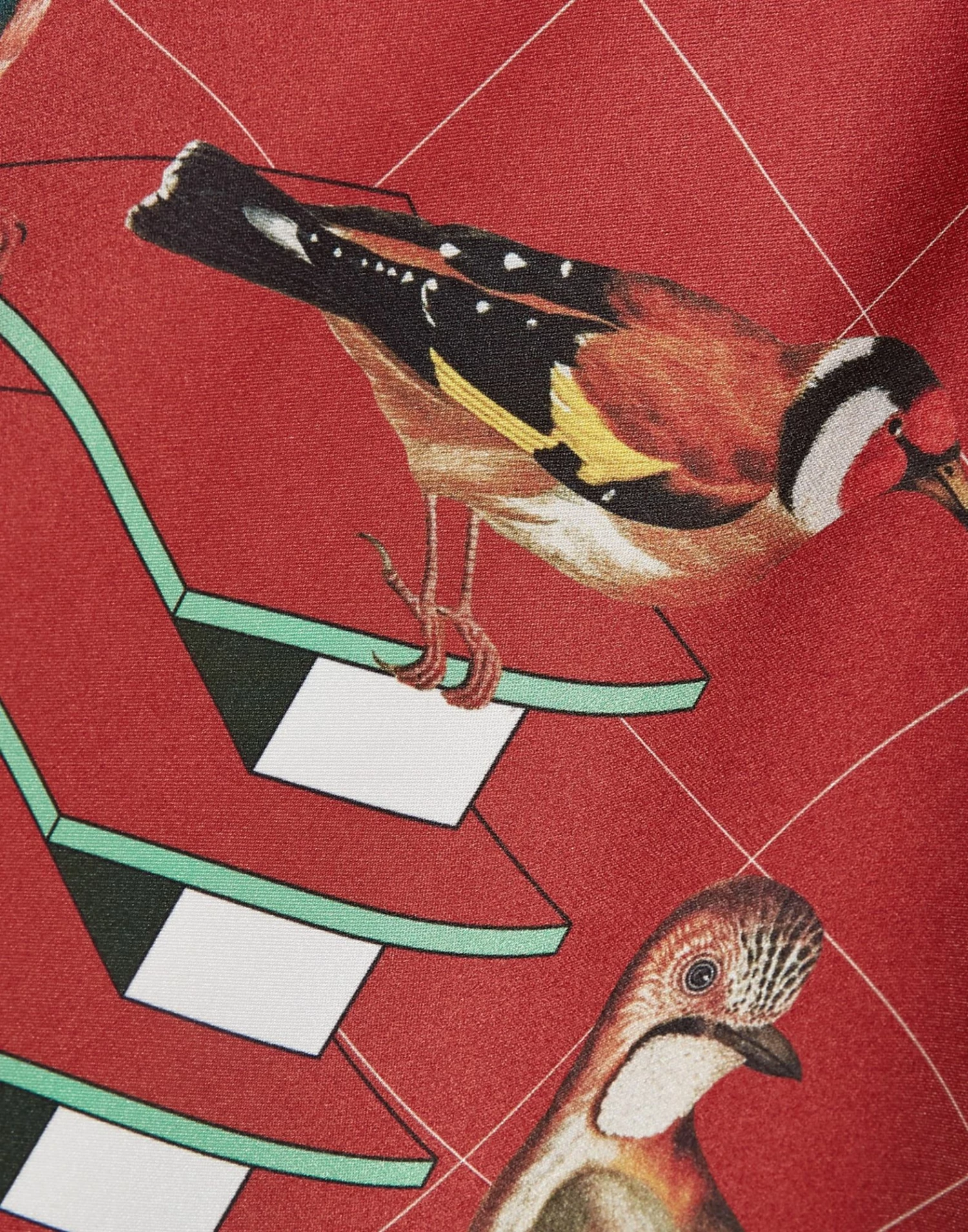 satin, no appliqués, multicolor pattern, round collar, short sleeves, no pockets, unlined, small sized