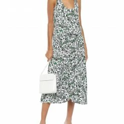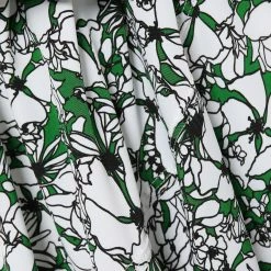 plain weave, frills, floral design, deep neckline, sleeveless, no pockets, side closure, zipper closure, unlined, small sized