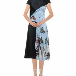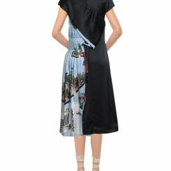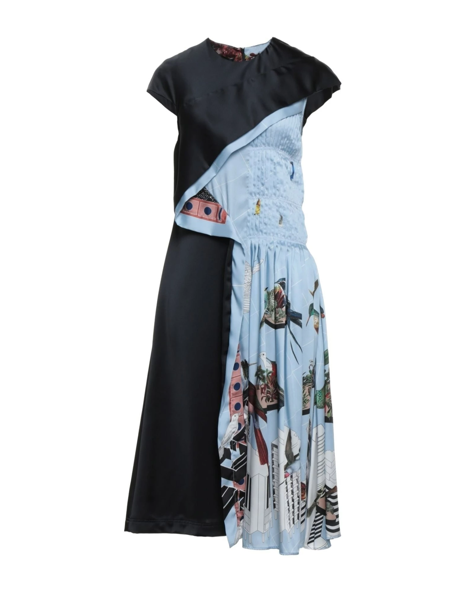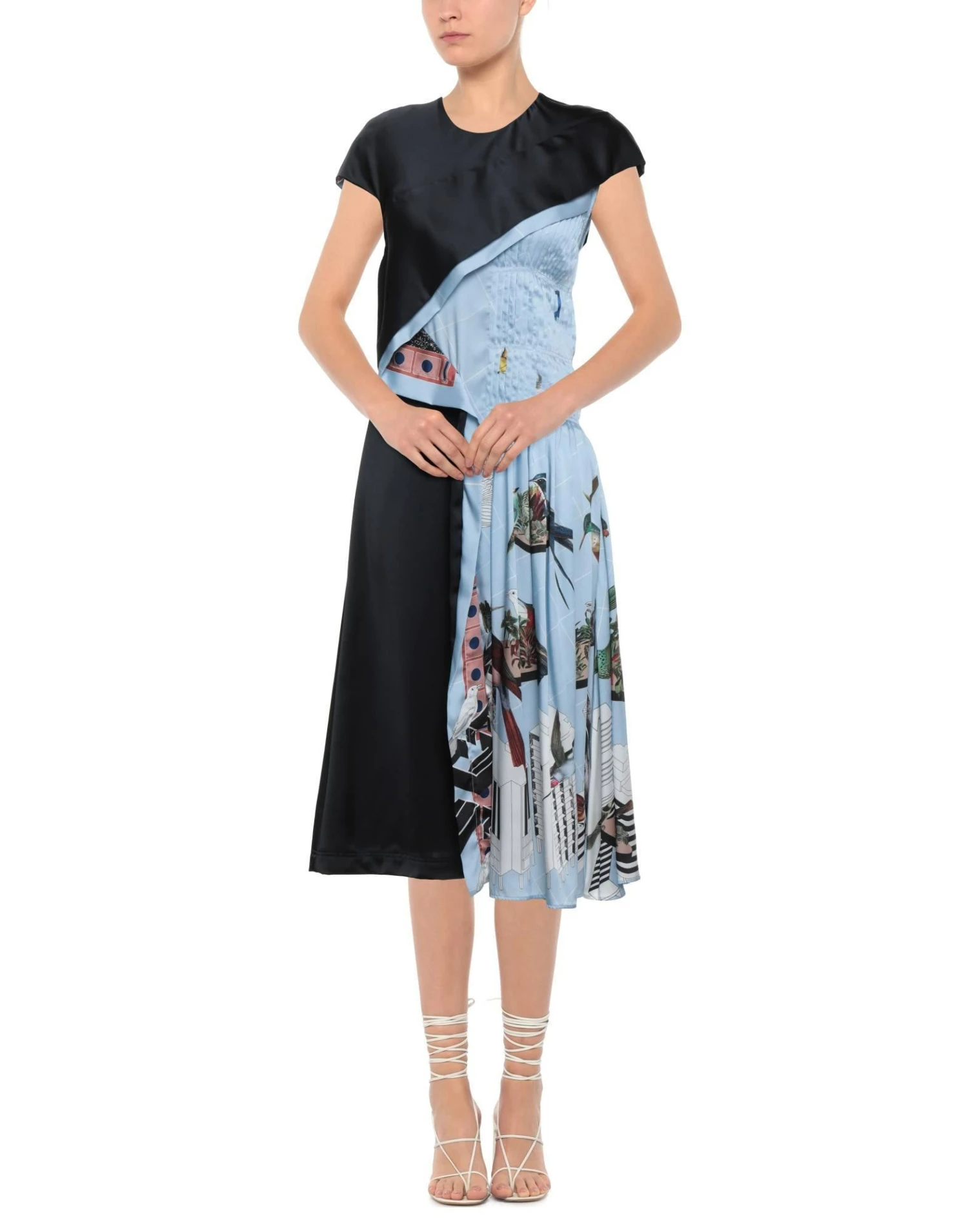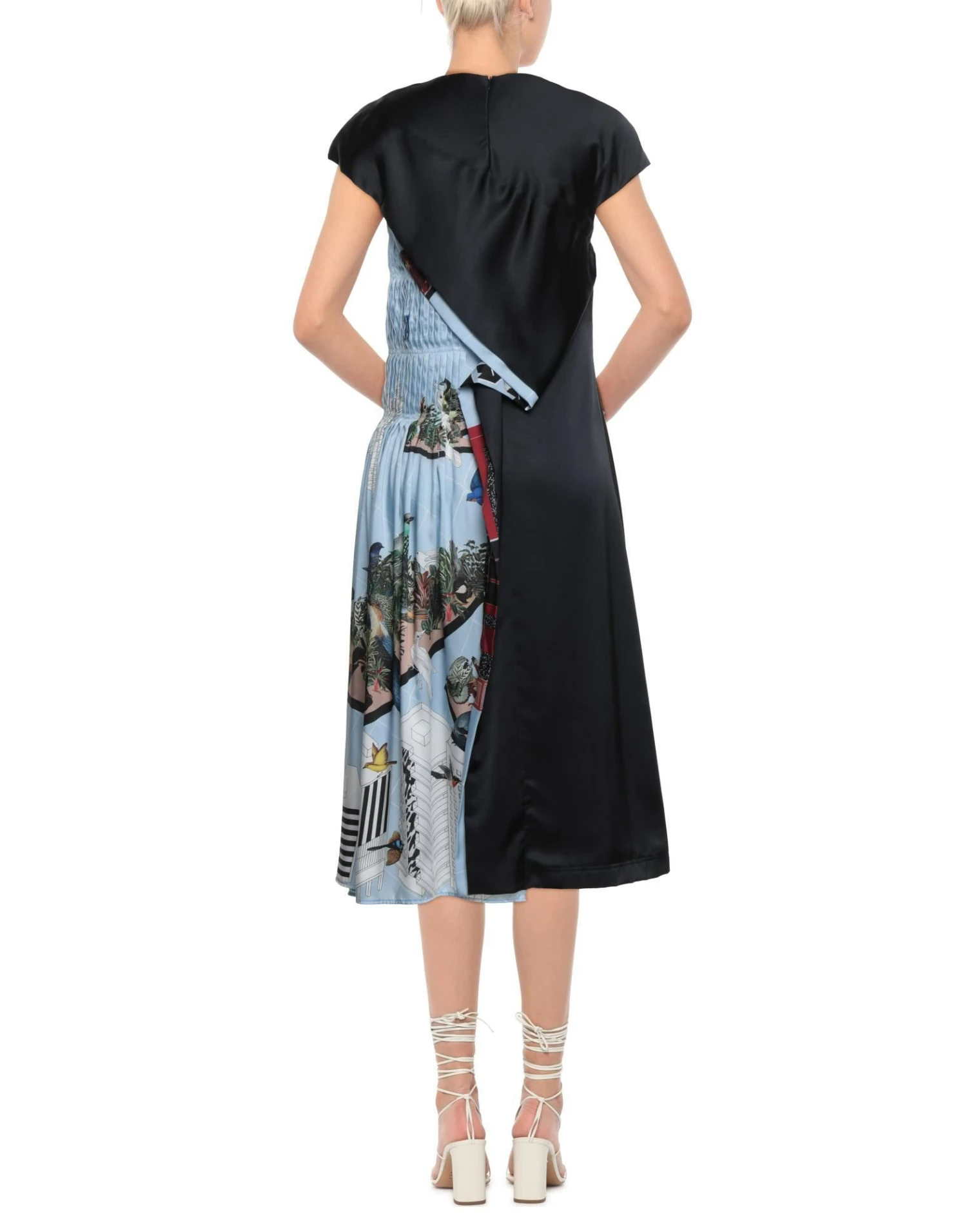 satin, folds, multicolor pattern, round collar, short sleeves, unlined, no pockets, zipper closure, small sized