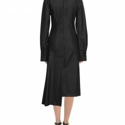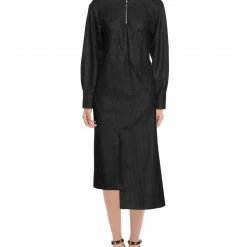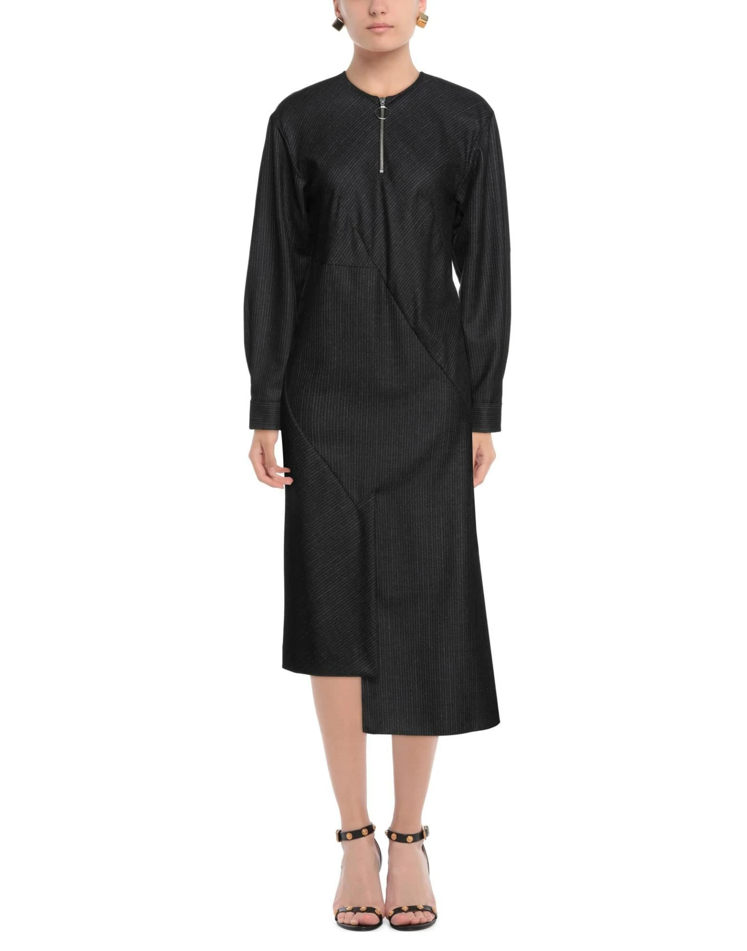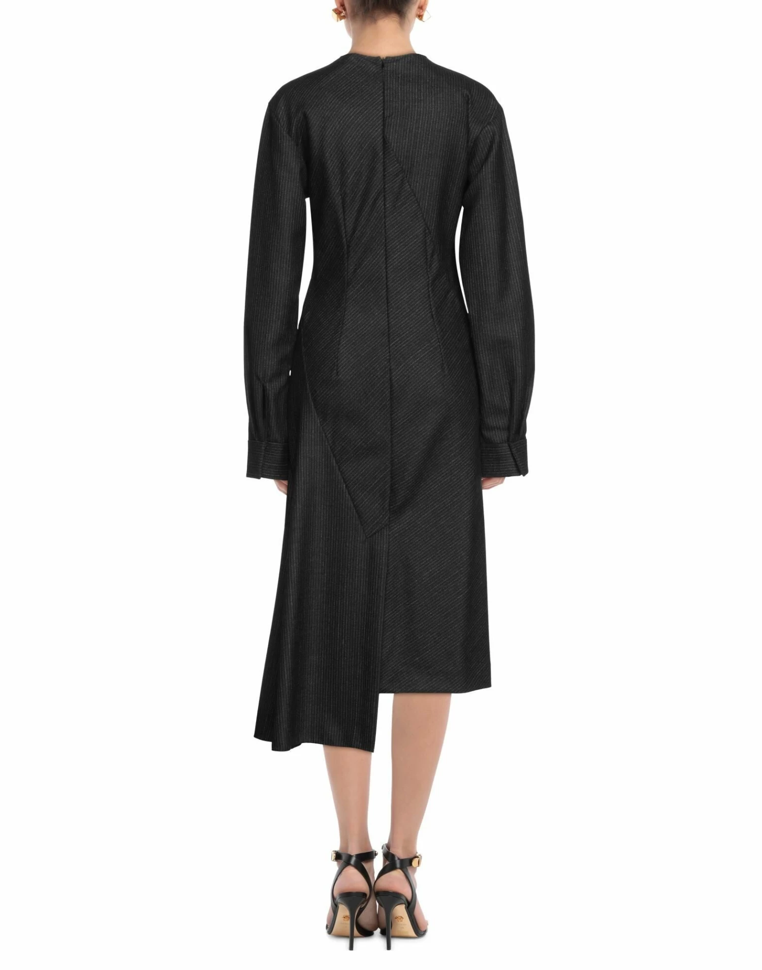cool wool, no appliqués, stripes, round collar, long sleeves, unlined, zipper closure, no pockets, asymmetrical hemline, front slit, small sized