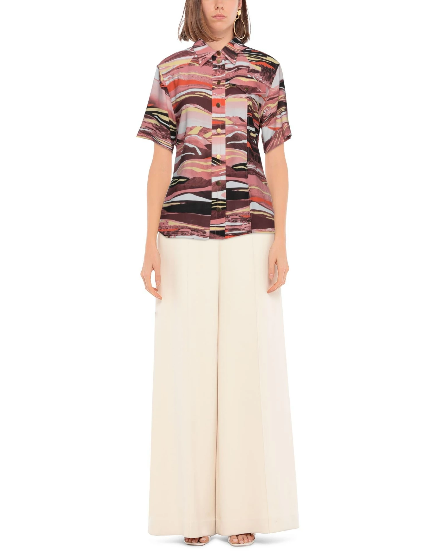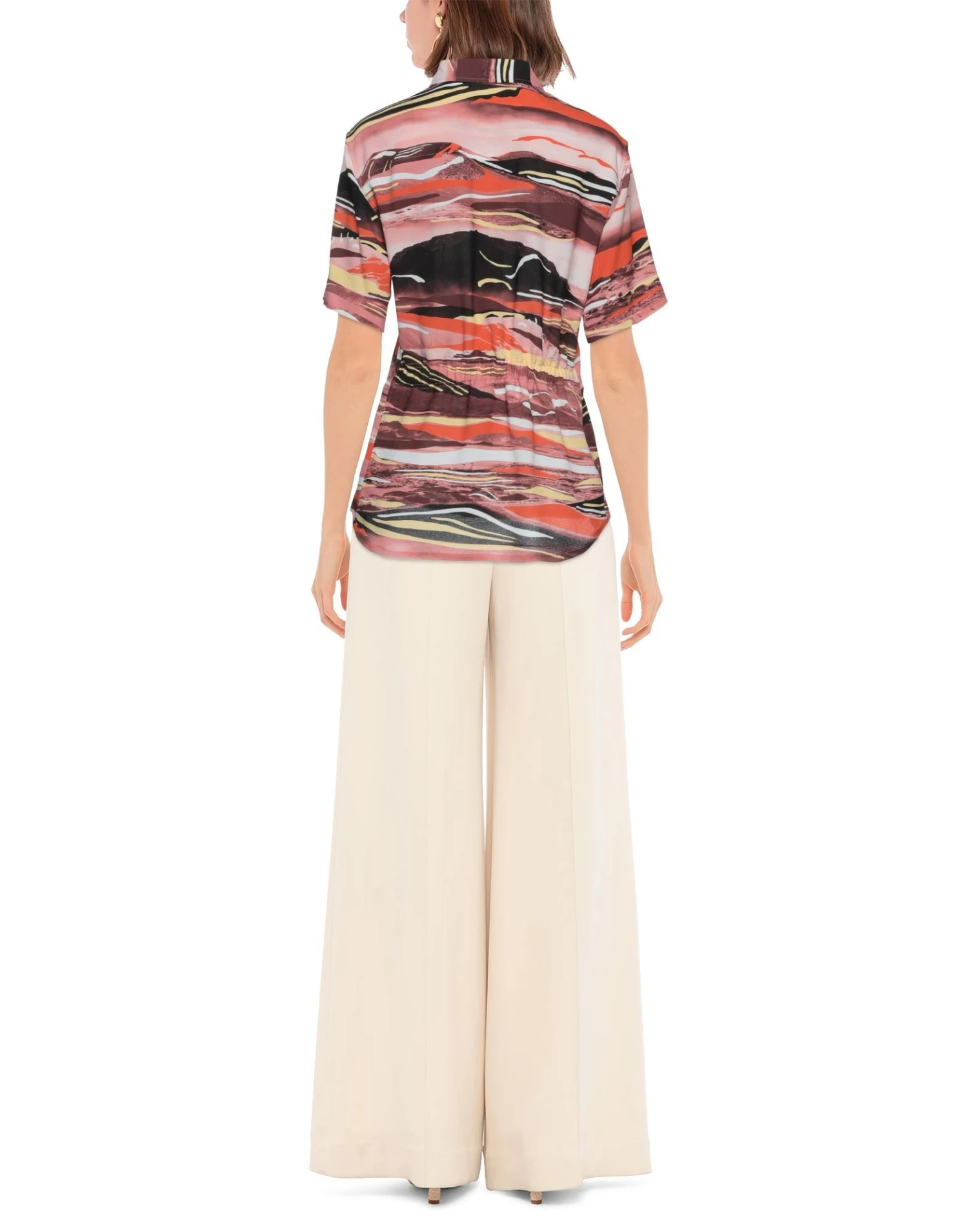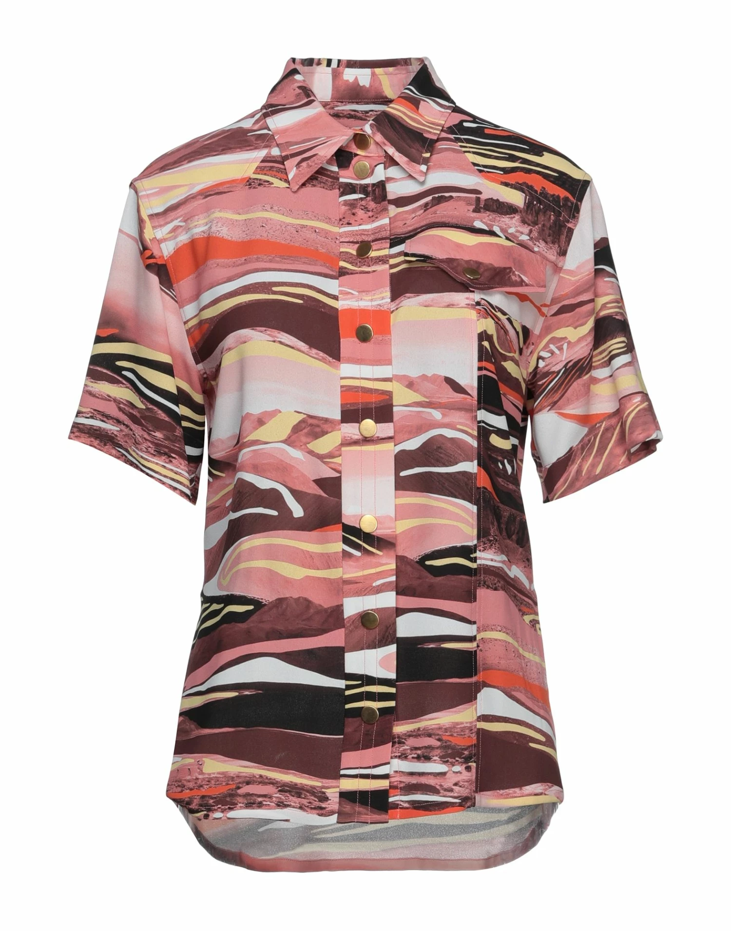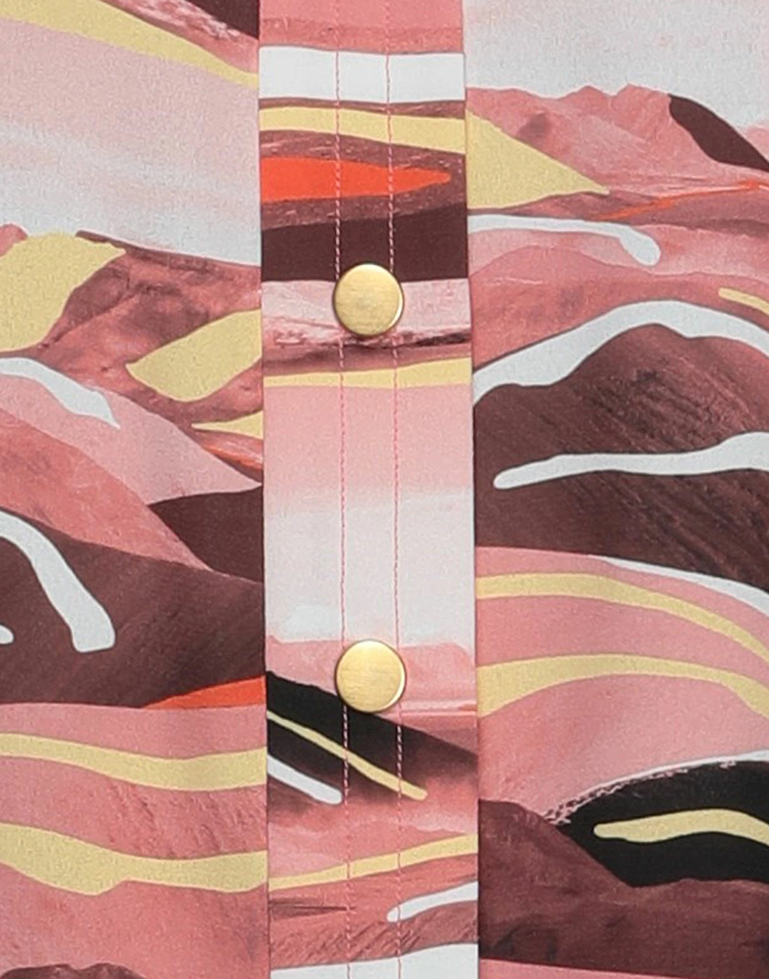 crepe, no appliqués, multicolor pattern, classic neckline, long sleeves, buttoned cuffs, snap buttons fastening, two breast pockets, small sized