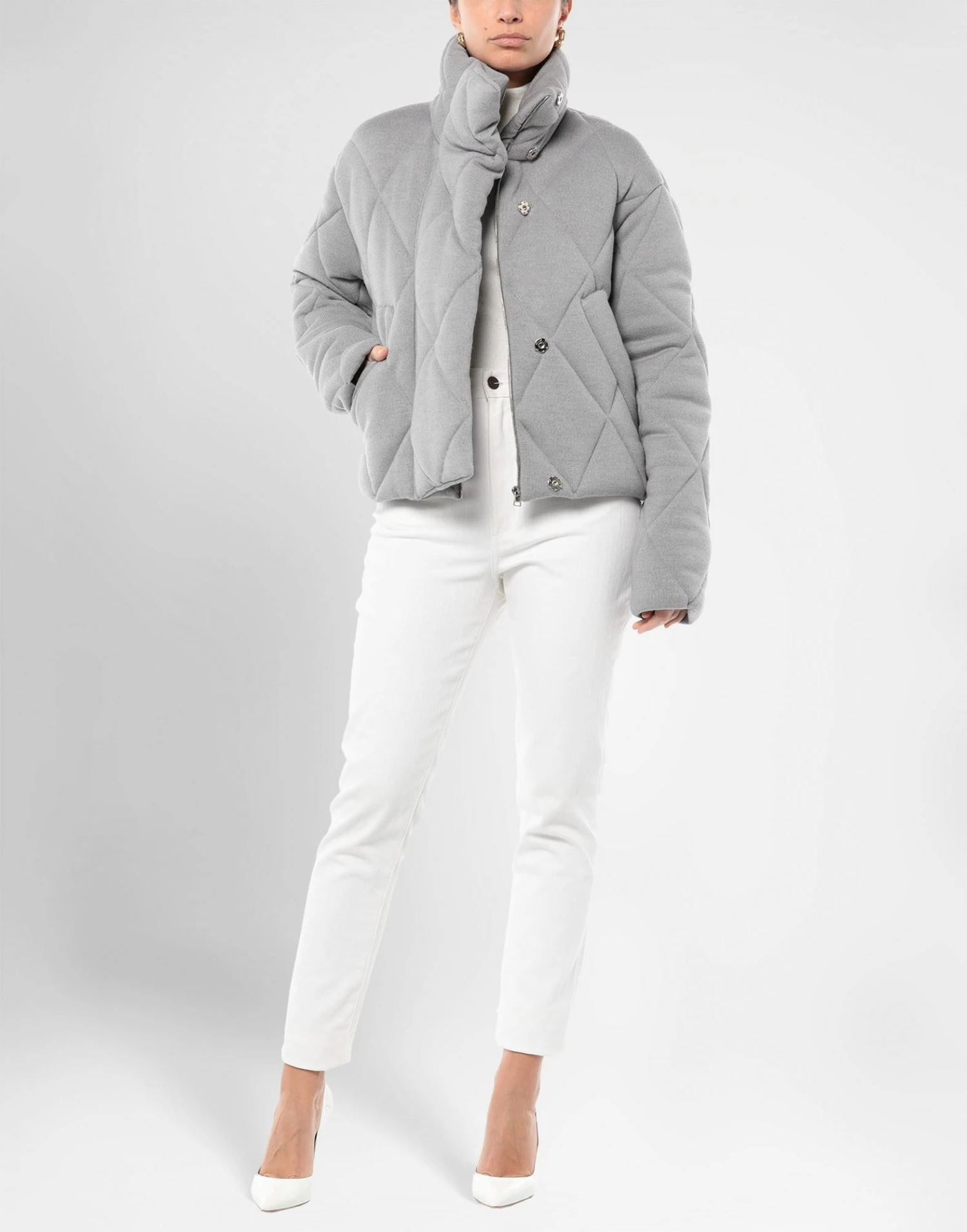 knitted, quilted, no appliqués, basic solid color, single-breasted , snap-buttons, zip, turtleneck, multipockets, long sleeves, unlined, large sized