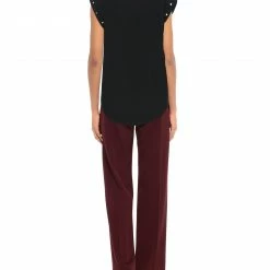 crepe, metal applications, v-neck, solid colour with appliqués, sleeveless, snap buttons fastening, no pockets, small sized