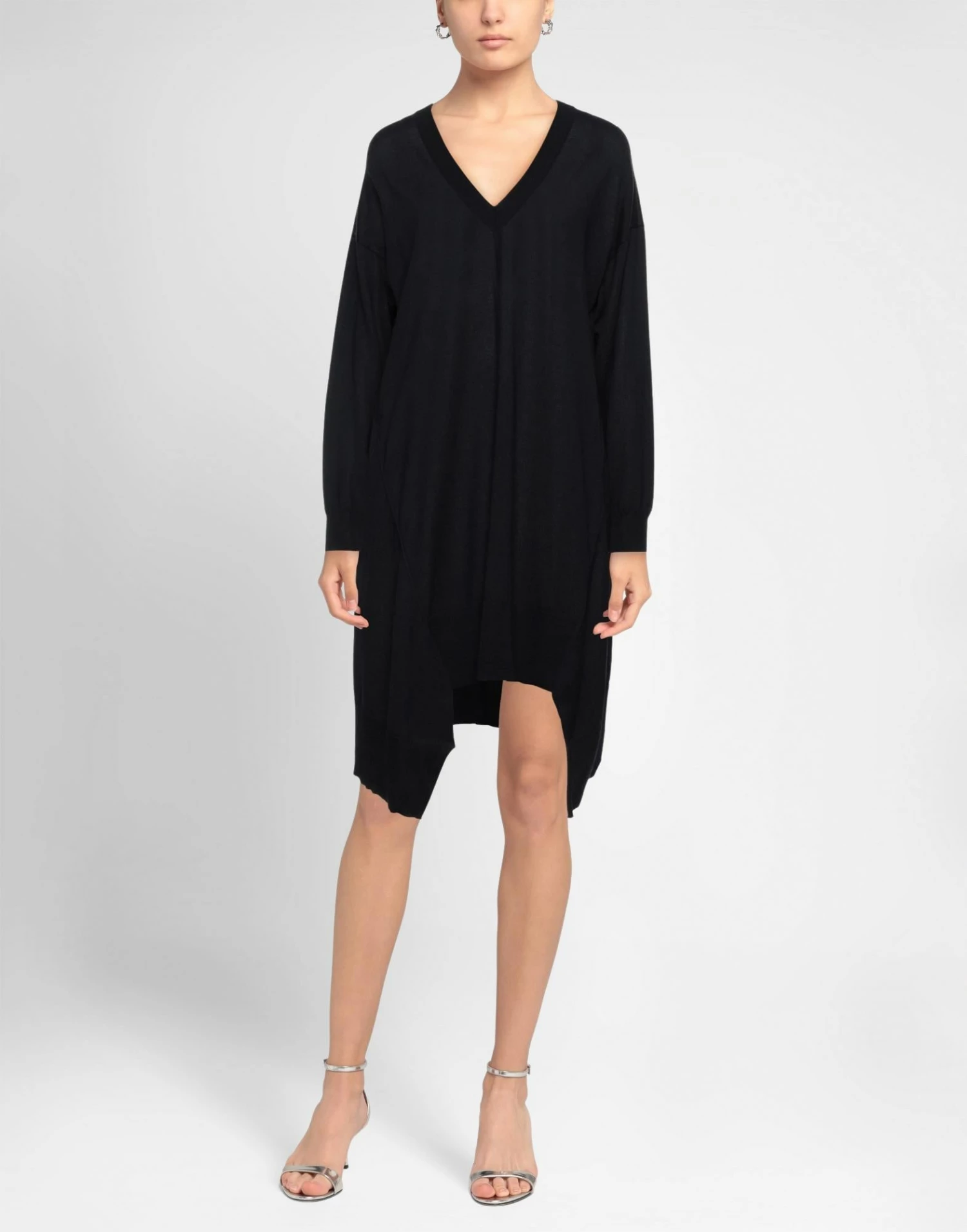 knitted, no appliqués, solid color, v-neck, long sleeves, no pockets, unlined, asymmetrical hemline, small sized
