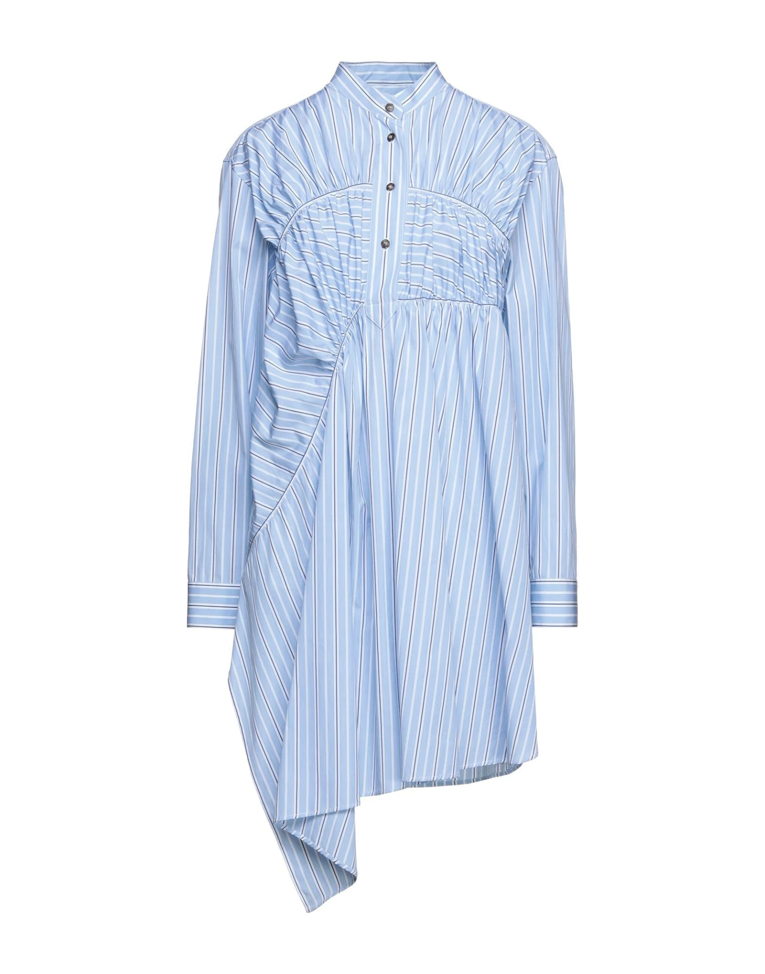 plain weave, frills, stripes, mandarin collar, long sleeves, no pockets, buttoned cuffs, front closure, button closing, unlined, contains non-textile parts of animal origin, small sized