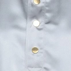 satin, fringes, solid color, polo collar, short sleeves, snap buttons fastening, no pockets, asymmetrical hemline, small sized