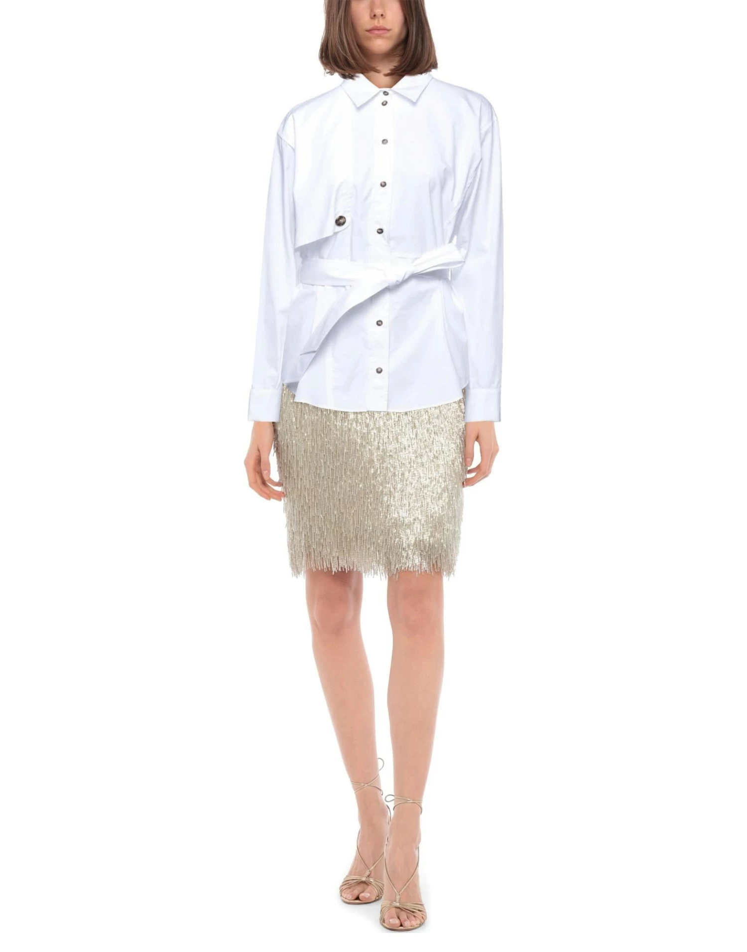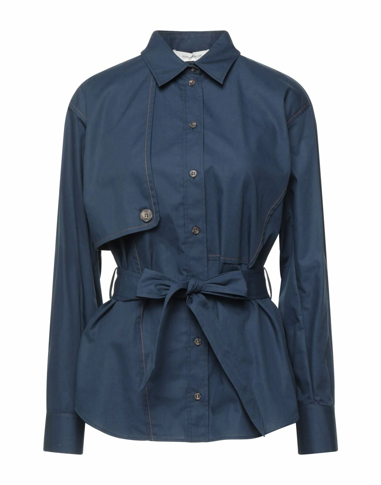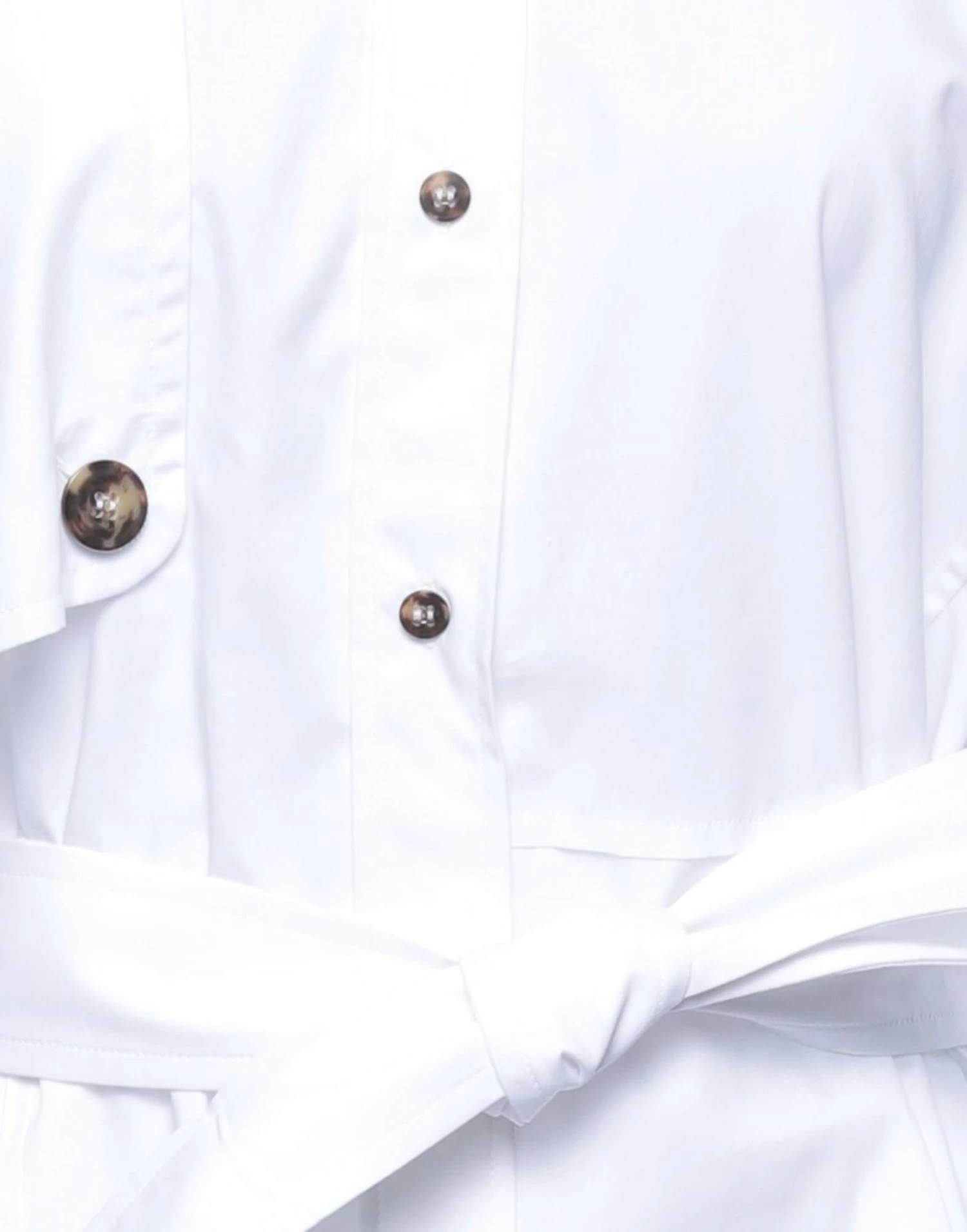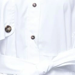 plain weave, no appliqués, solid color, classic neckline, long sleeves, buttoned cuffs, button closing, no pockets, contains non-textile parts of animal origin, small sized
