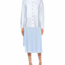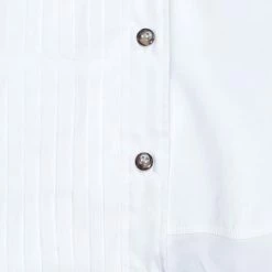 plain weave, no appliqués, solid color, classic neckline, long sleeves, buttoned cuffs, button closing, no pockets, pleated, small sized