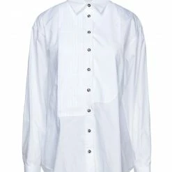 plain weave, no appliqués, solid color, classic neckline, long sleeves, buttoned cuffs, button closing, no pockets, pleated, small sized