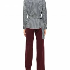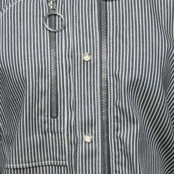 plain weave, metal applications, stripes, classic neckline, long sleeves, snap buttons fastening, single pocket, unlined, small sized