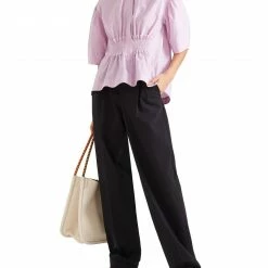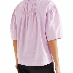 plain weave, frills, stripes, classic neckline, short sleeves, button closing, no pockets, small sized