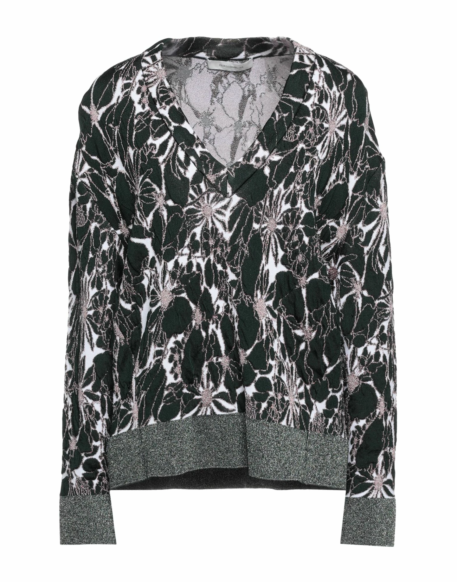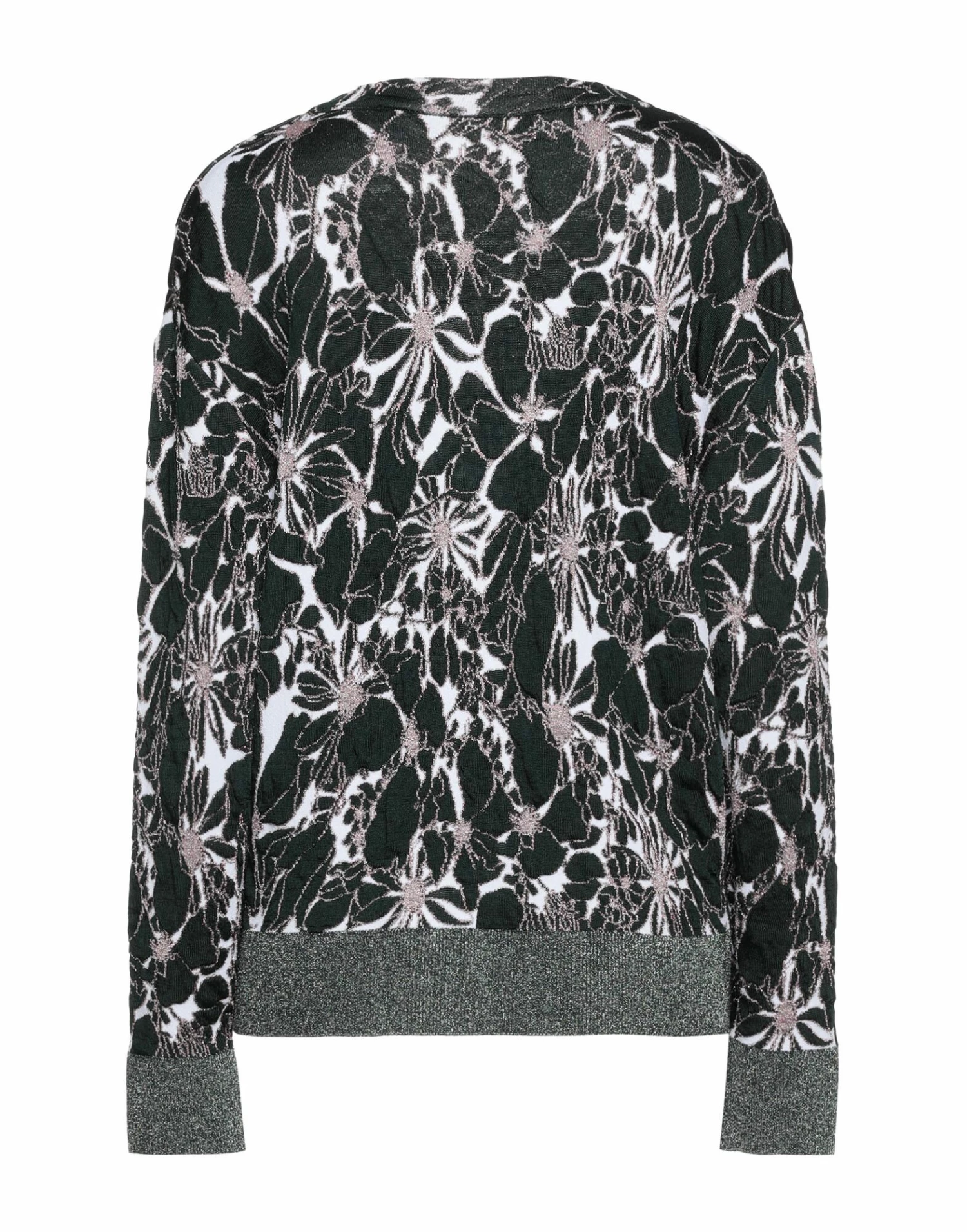 knitted, lamé, no appliqués, lightweight knit, v-neck, floral design, long sleeves, no pockets
