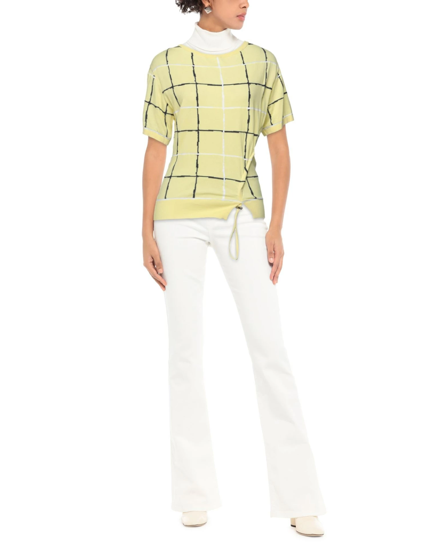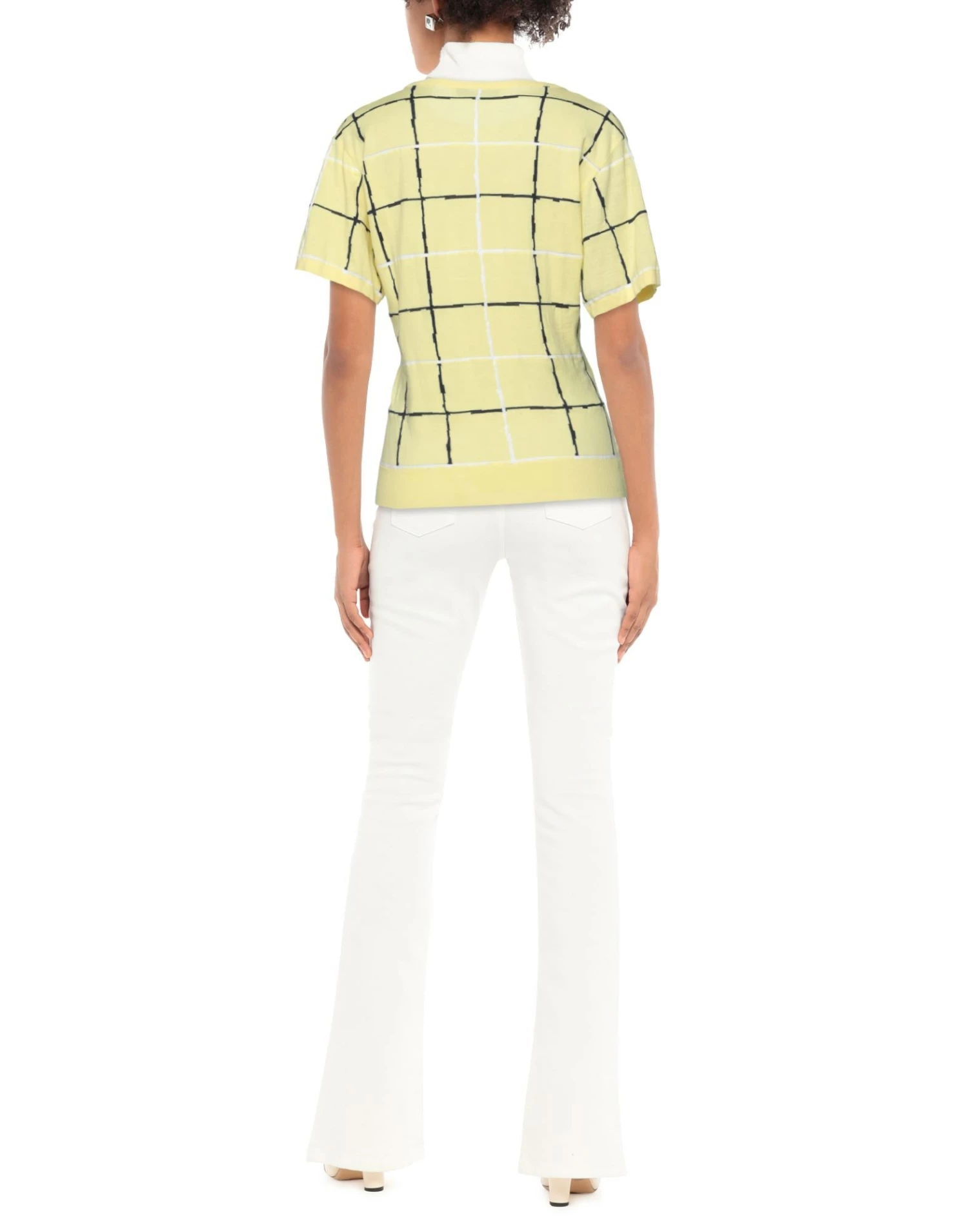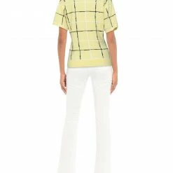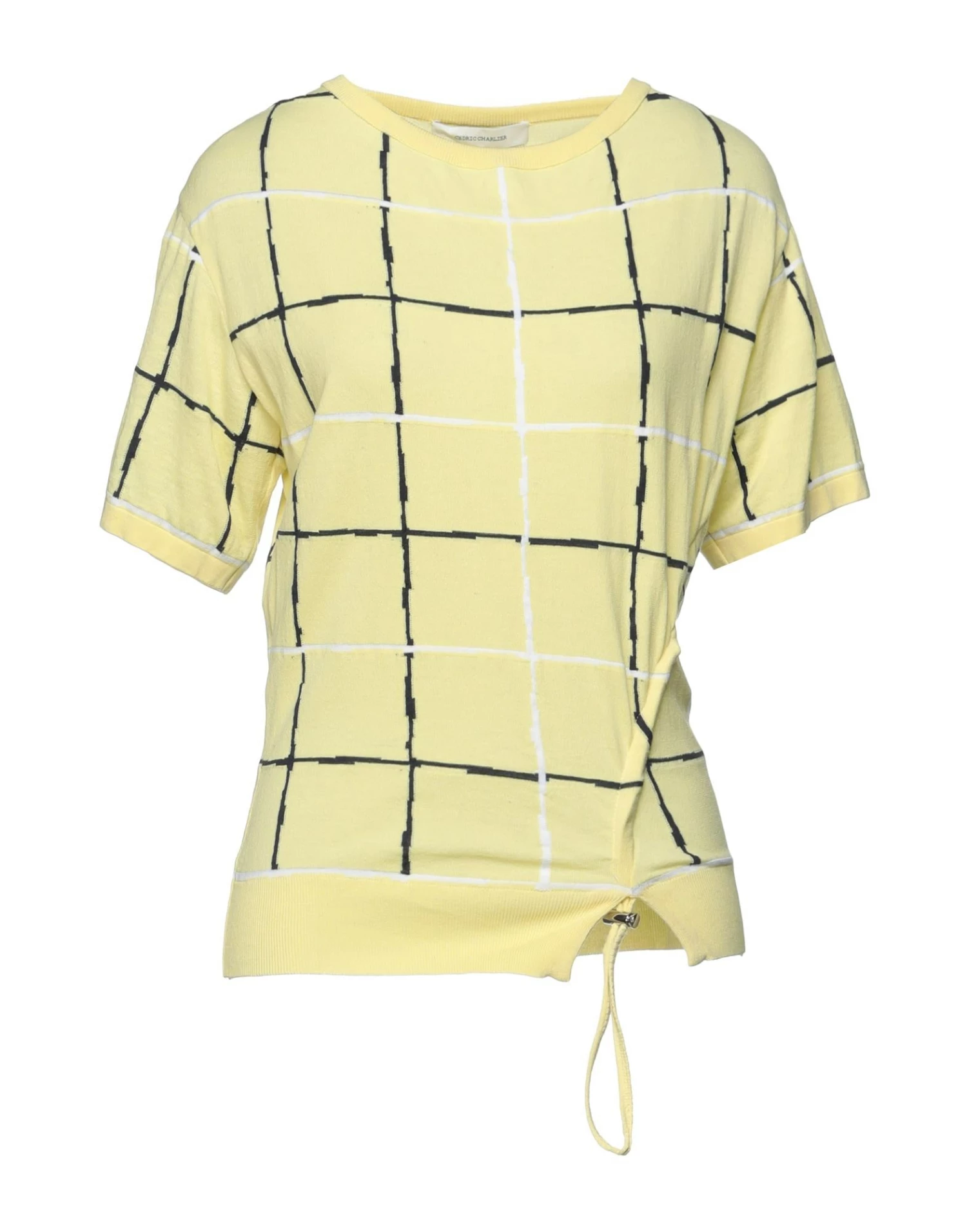 knitted, no appliqués, lightweight knit, round collar, checked, short sleeves, no pockets, drawstring hem