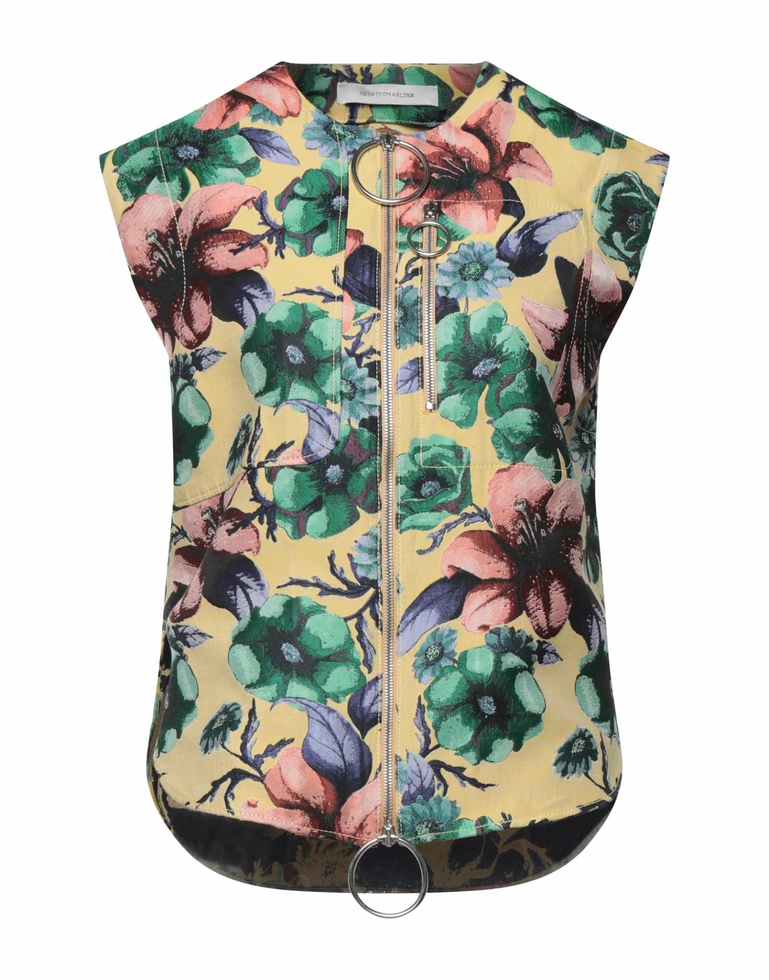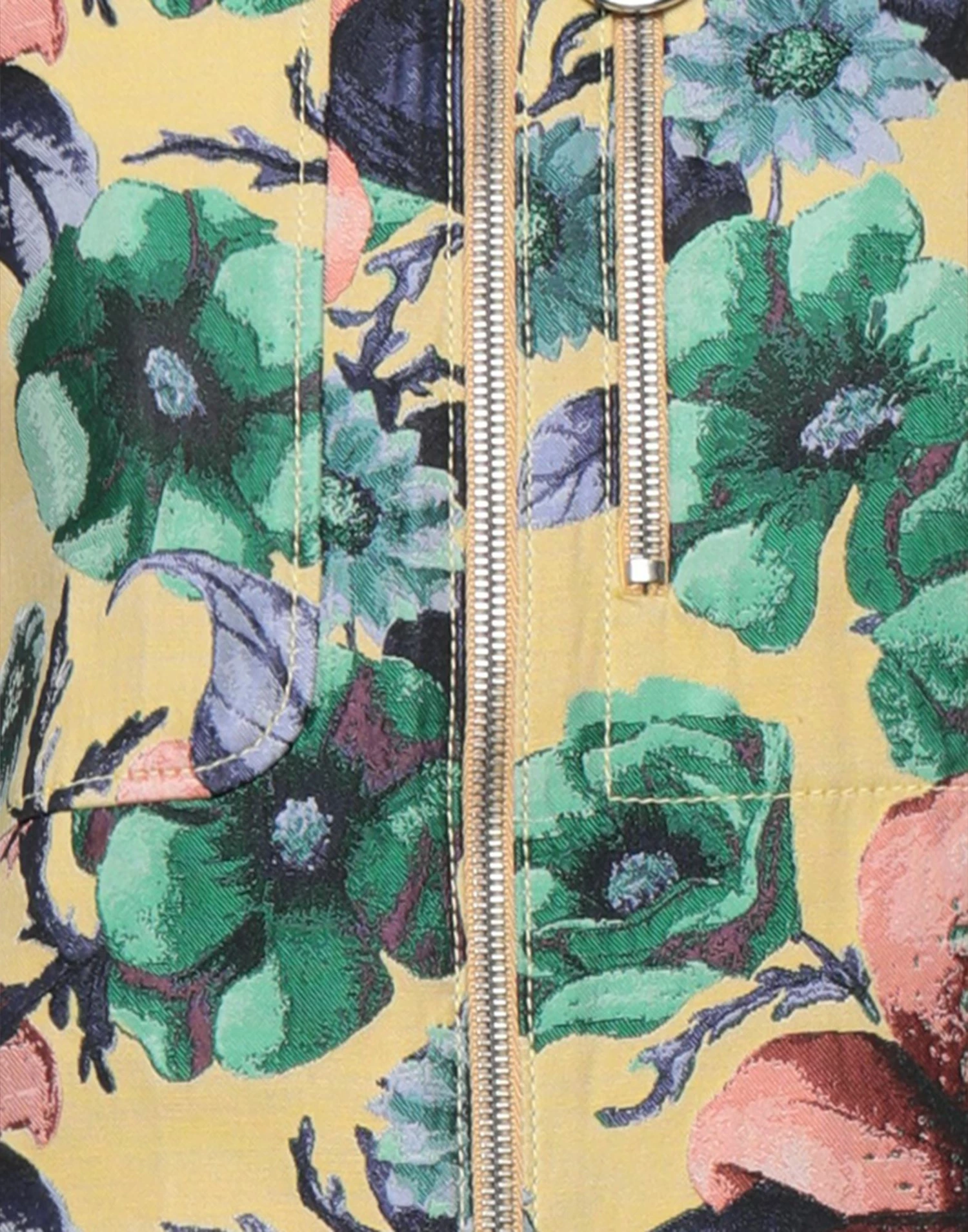 jacquard, plain weave, metal applications, floral design, round collar, sleeveless, zipper closure, small sized