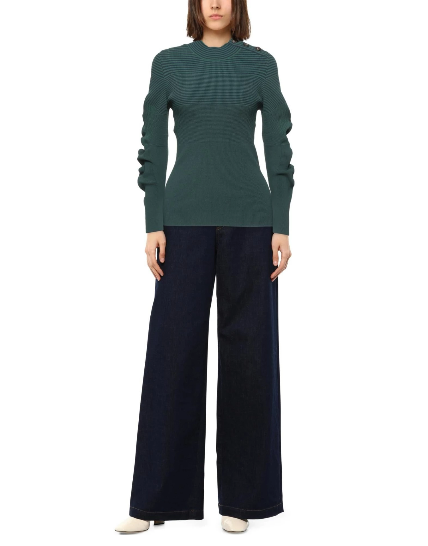 knitted, lightweight knit, no appliqués, stripes, turtleneck, long sleeves, button closing, no pockets