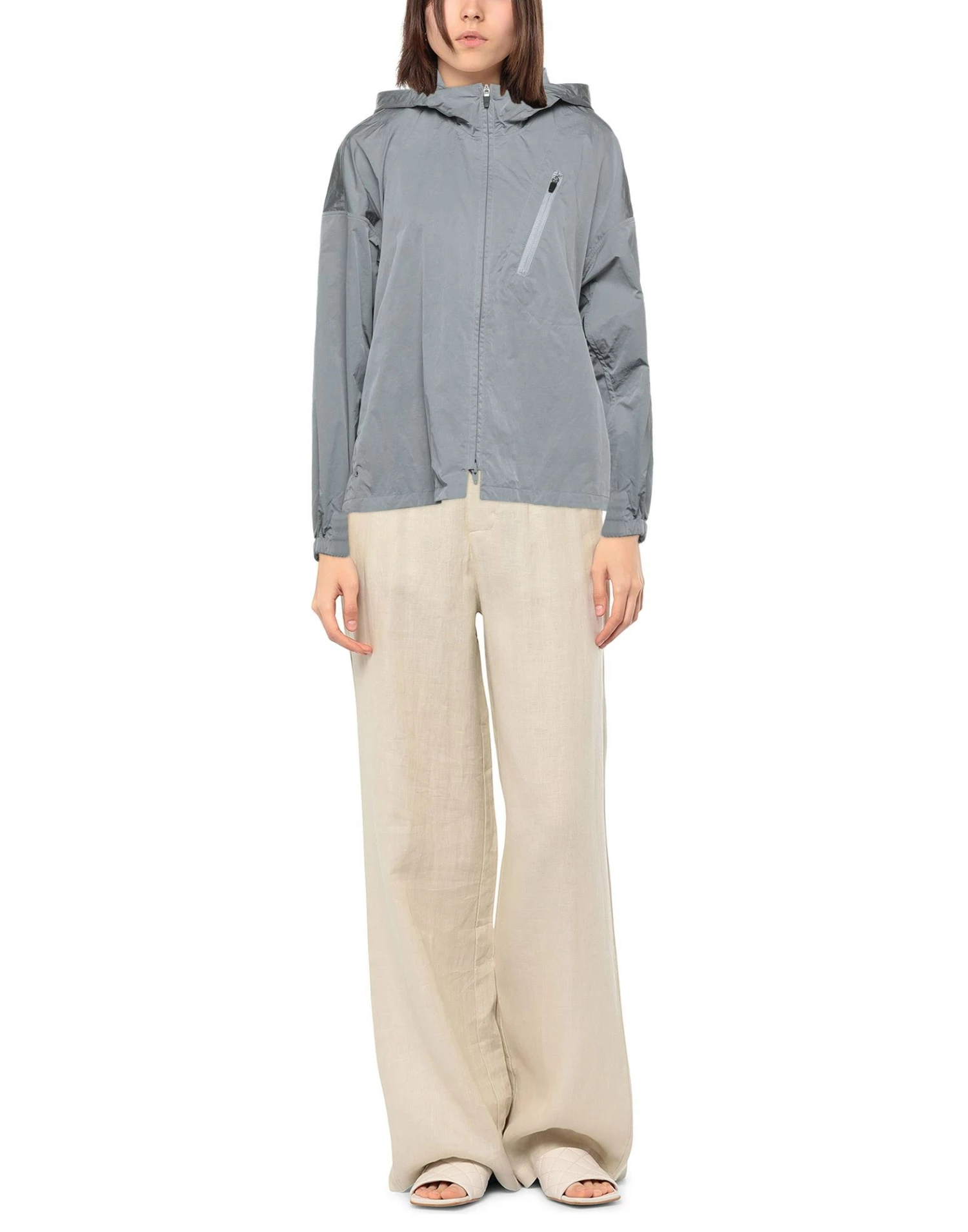 techno fabric, no appliqués, solid color, single-breasted , hooded collar, long sleeves, zipper closure, multipockets, unlined