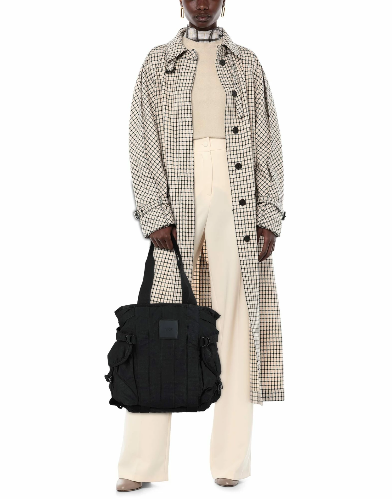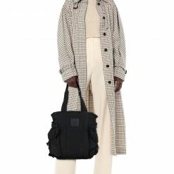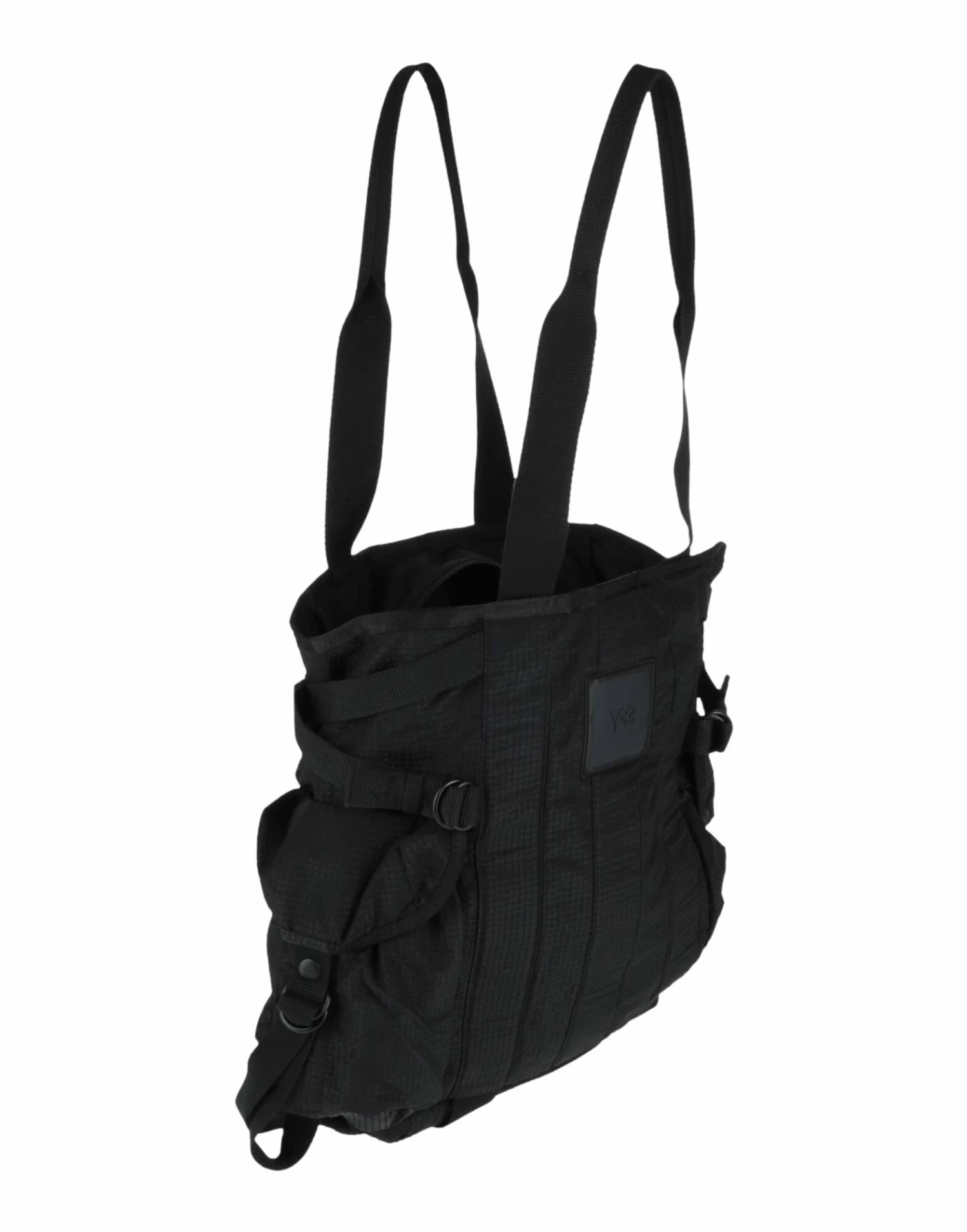 maxi, techno fabric, brand logo, solid color, double handle, fully lined, zipper closure, external side slit pockets, daytime