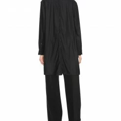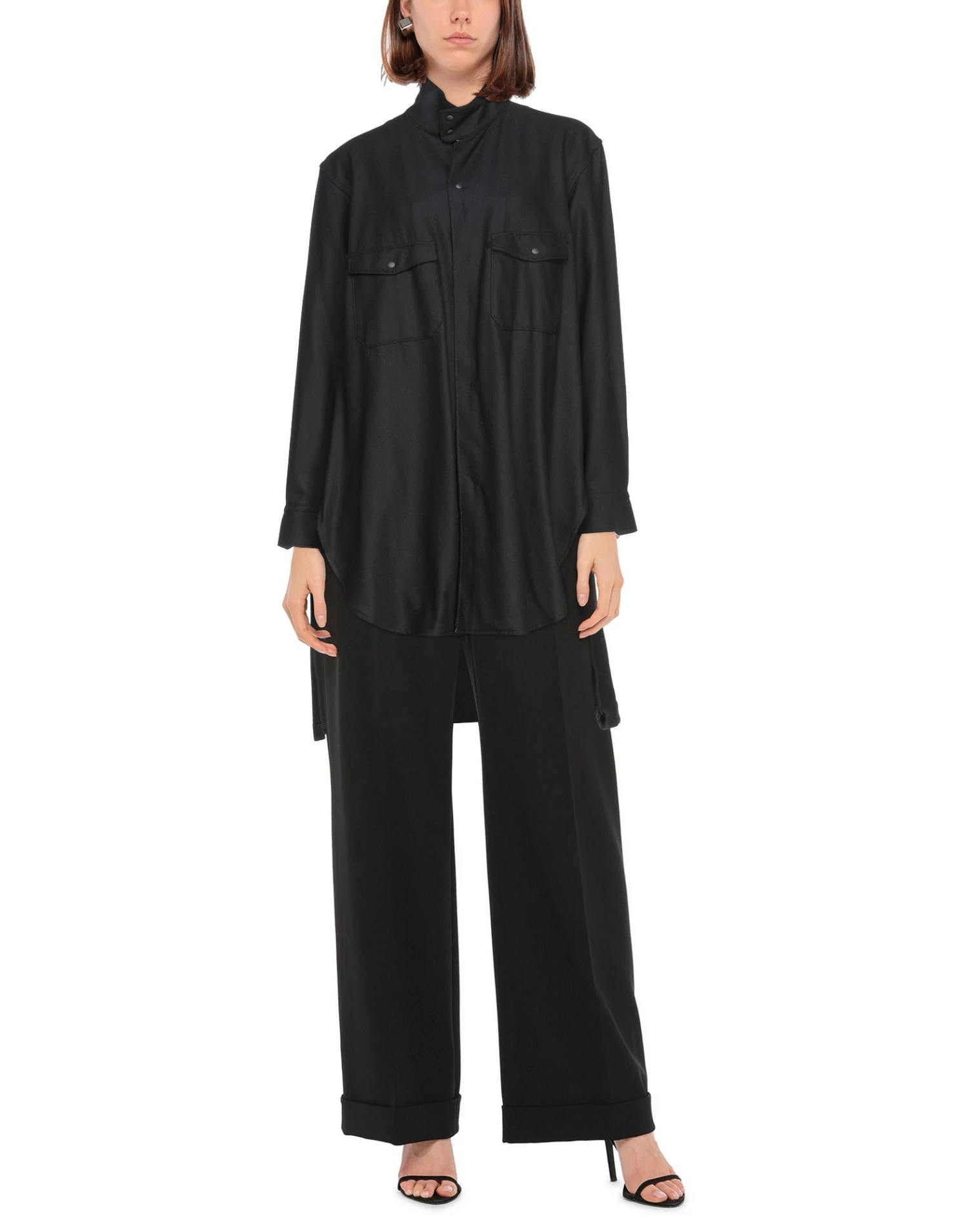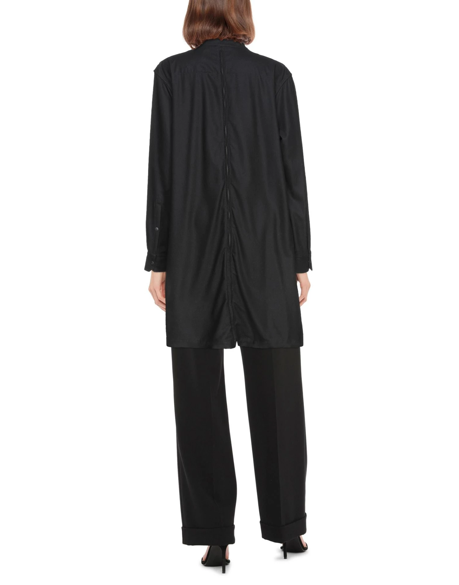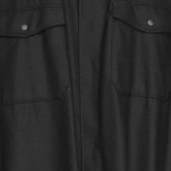 flannel, no appliqués, solid color, front closure, zipper closure, long sleeves, turtleneck, two breast pockets, side slit hemline, semi-lined, large sized