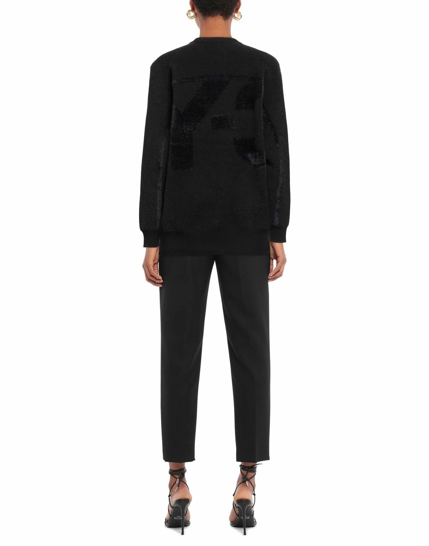 velour, knitted, brand logo, solid color, round collar, long sleeves, lightweight knit, no pockets, small sized